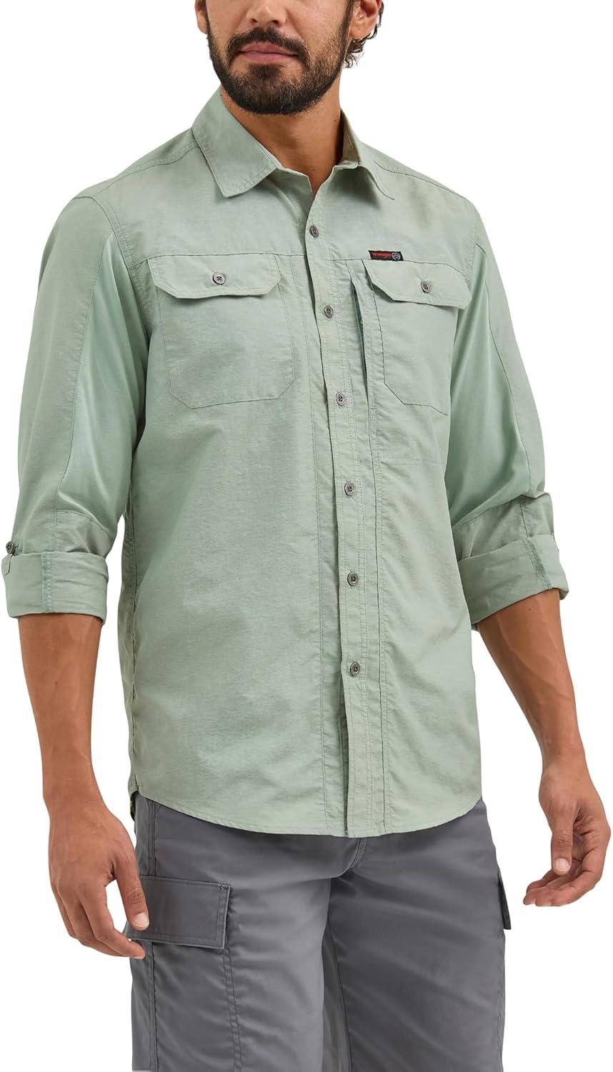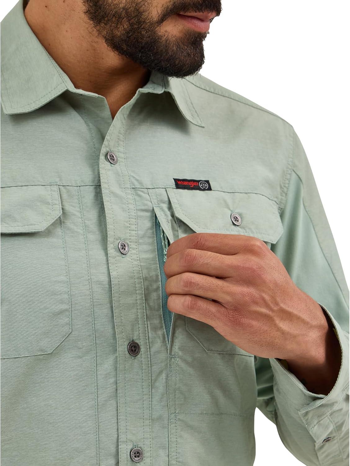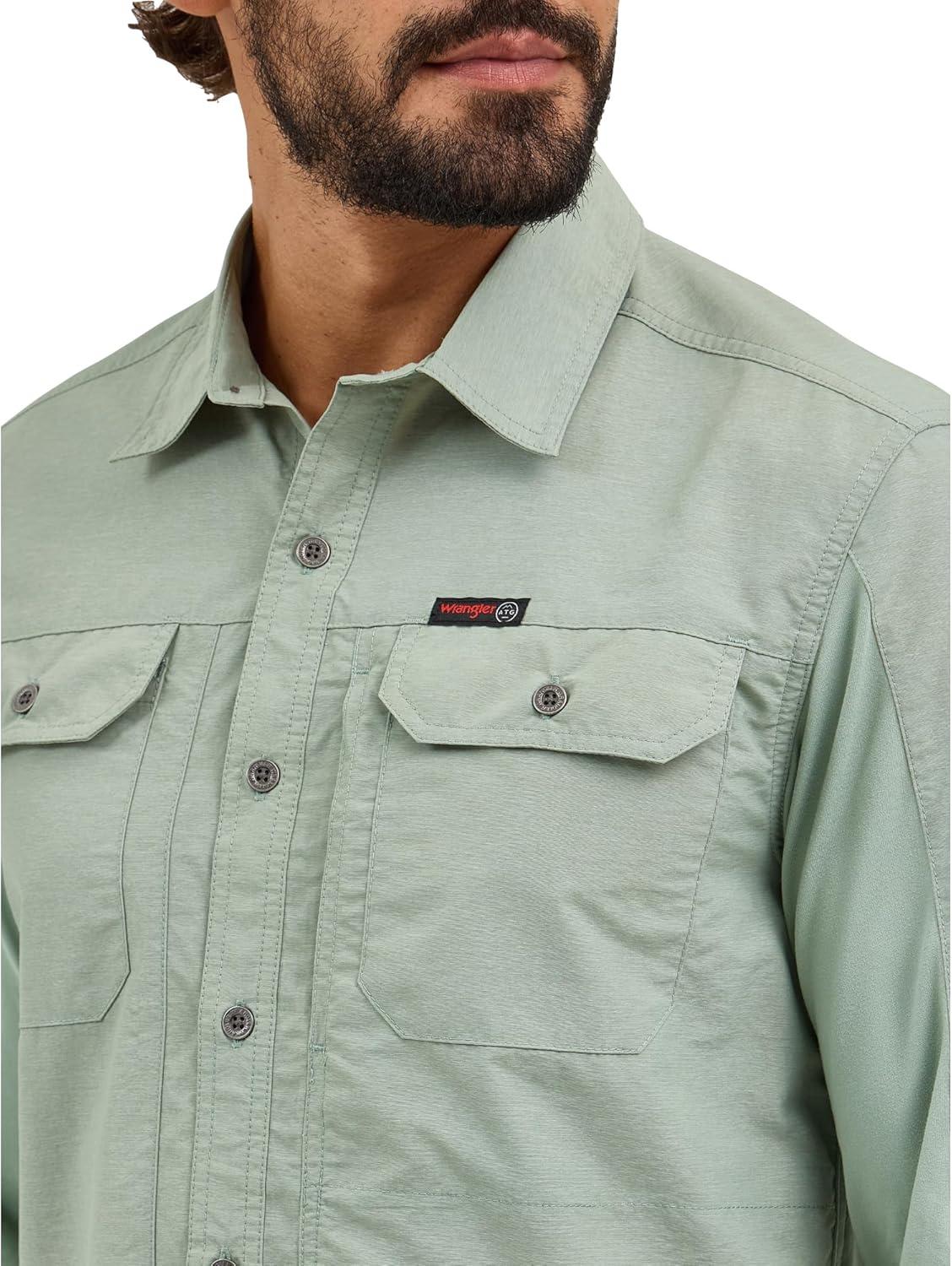 ATG by Wrangler Men’s Long Sleeve Mixed Material Shirt(Iceberg Green)