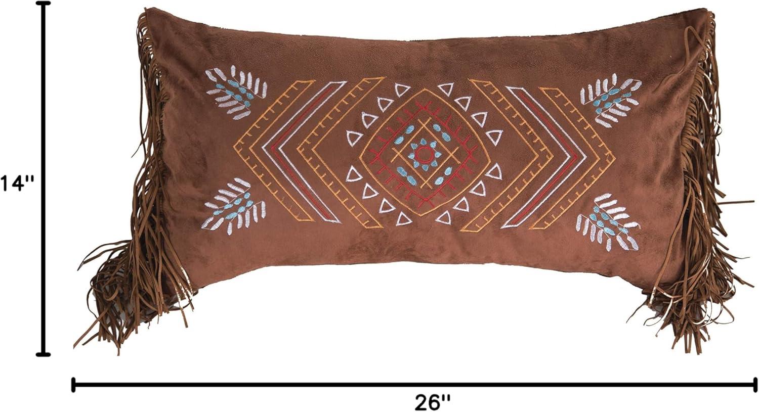 Carstens, Inc Carstens Wrangler Embroidered Southwestern Fringe 14×26 Throw Pillow, Brown