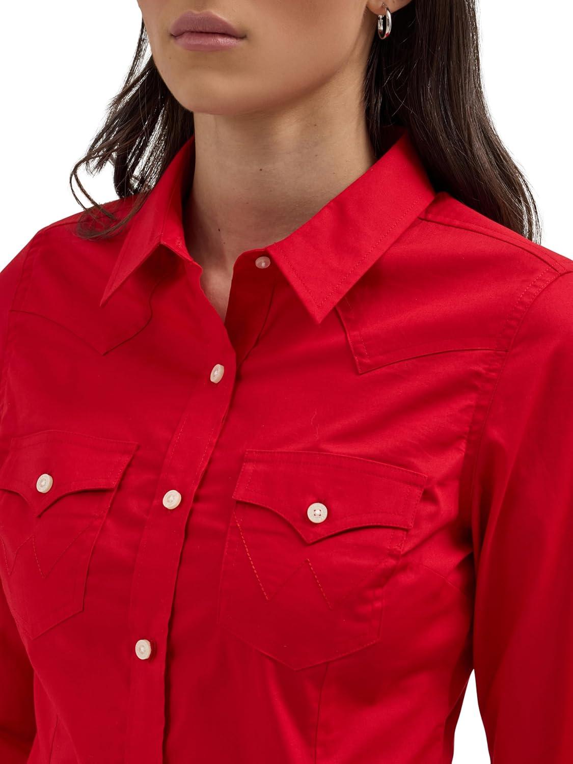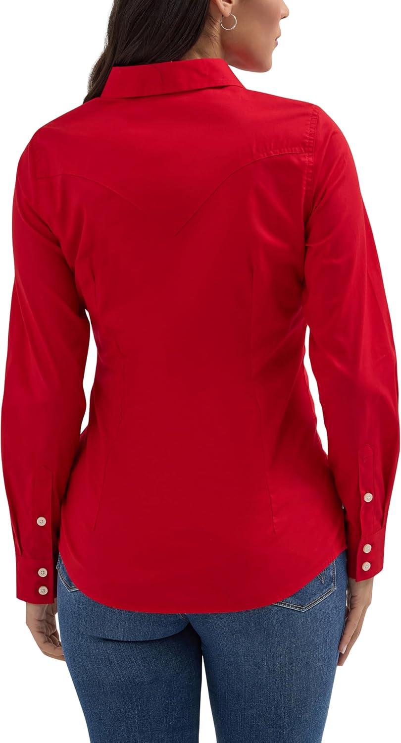 Women’s Retro Long Sleeve Cool Blue Solid Western Shirt(Red)