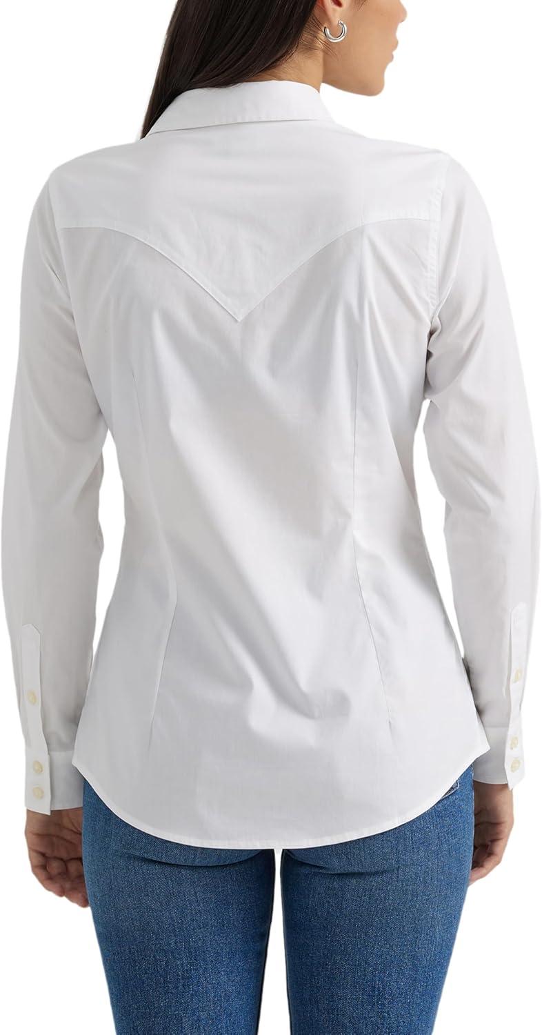 Women’s Retro Long Sleeve Cool Blue Solid Western Shirt(White)