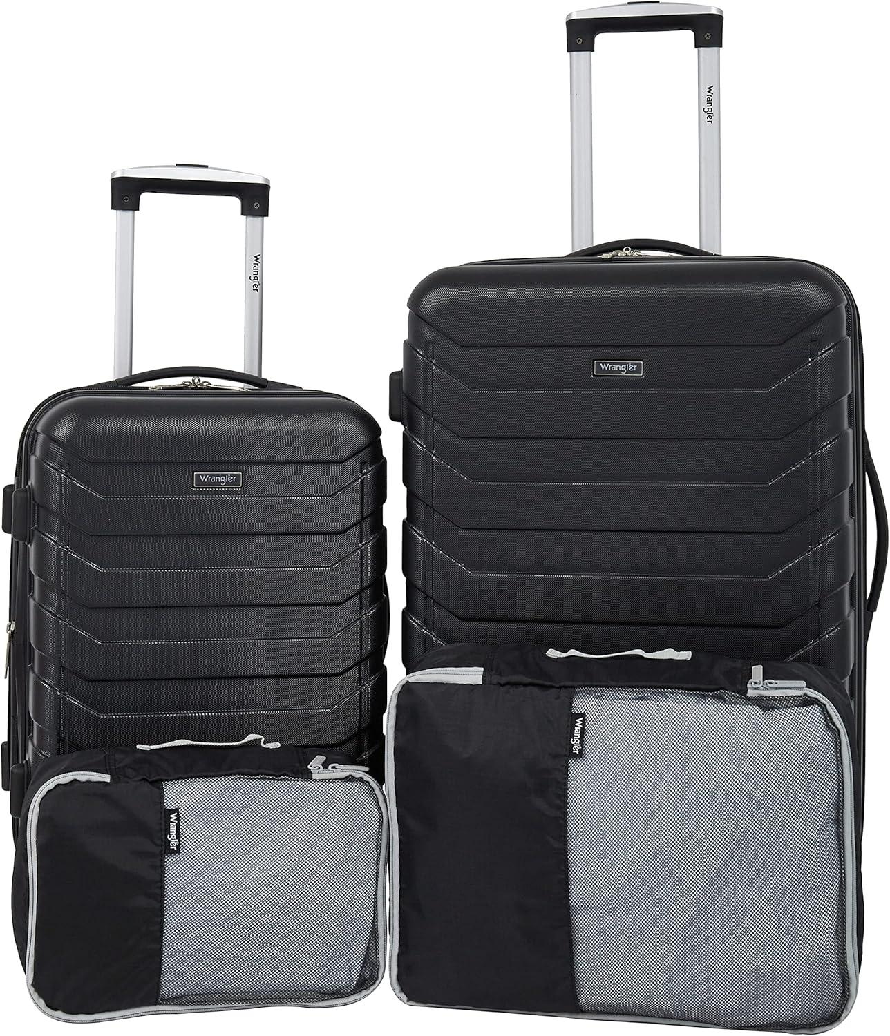Wrangler 4 Piece Set Includes: 25″ Hardside Expandable Check-In Suitcase, 20″ Hardside Expandable Carry-On Luggage, 15.5″ Packing Cube, 12″ Packing Cube