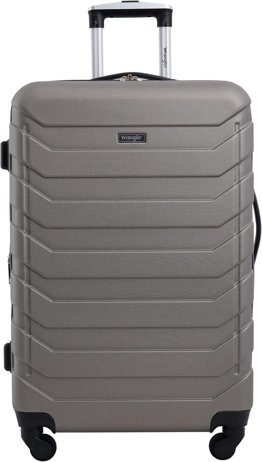 Wrangler 4 Piece Set Includes: 25″ Hardside Expandable Check-In Suitcase, 20″ Hardside Expandable Carry-On Luggage, 15.5″ Packing Cube, 12″ Packing Cube
