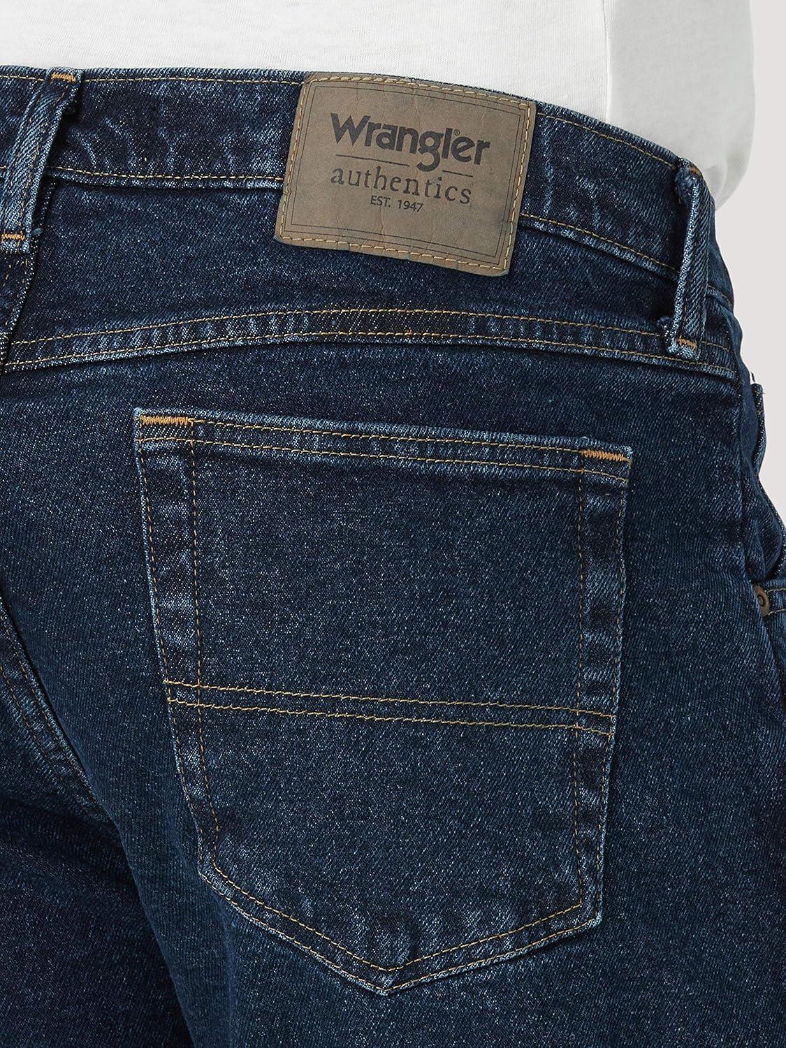 The Wrangler Authentics collection delivers laid-back style for the man on the go. Performance-level comfort is built into our classic button-downs and blue jeans for an outfit that feels as good as it looks. Wrangler Authentics jeans are constructed with 5-pocket styling, made from heavyweight 100% cotton denim and feature a comfortable waist with deep front pockets. Available with Advanced Comfort technology that helps your jeans move with you for all day comfort. Pair with your favorite Wrangler Authentics shirt for a night out or casual weekend.