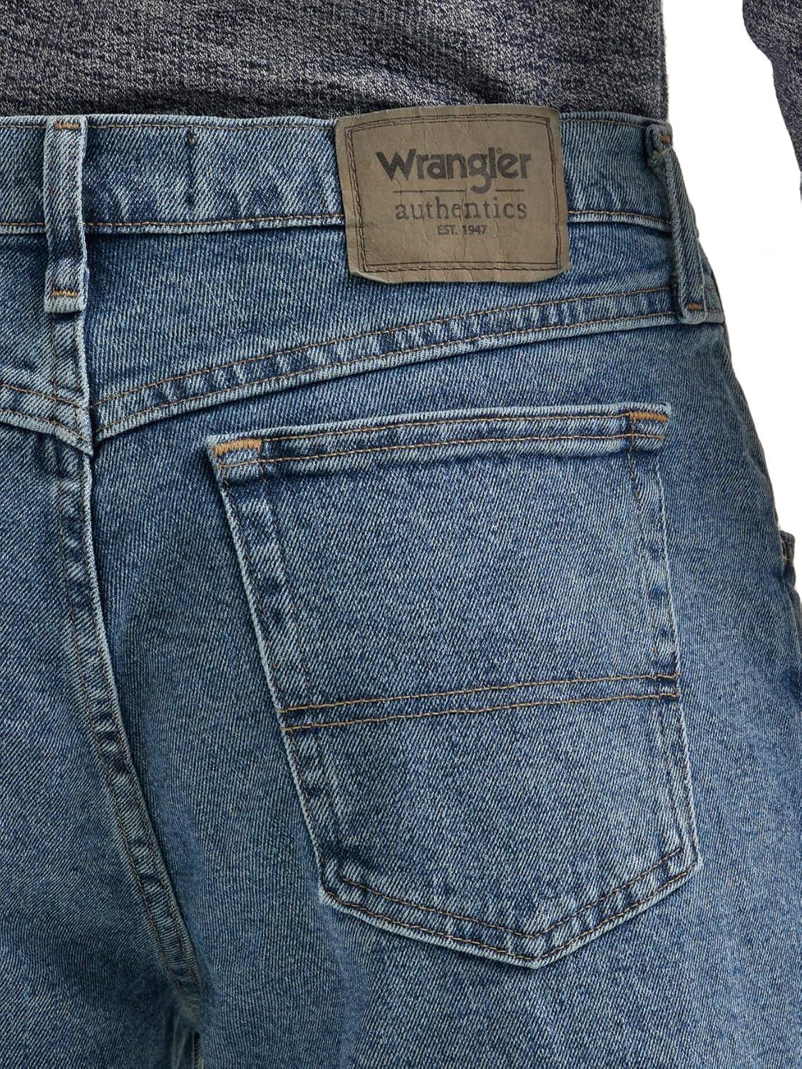 The Wrangler Authentics collection delivers laid-back style for the man on the go. Performance-level comfort is built into our classic button-downs and blue jeans for an outfit that feels as good as it looks. Wrangler Authentics jeans are constructed with 5-pocket styling, made from heavyweight 100% cotton denim and feature a comfortable waist with deep front pockets. Available with Advanced Comfort technology that helps your jeans move with you for all day comfort. Pair with your favorite Wrangler Authentics shirt for a night out or casual weekend.