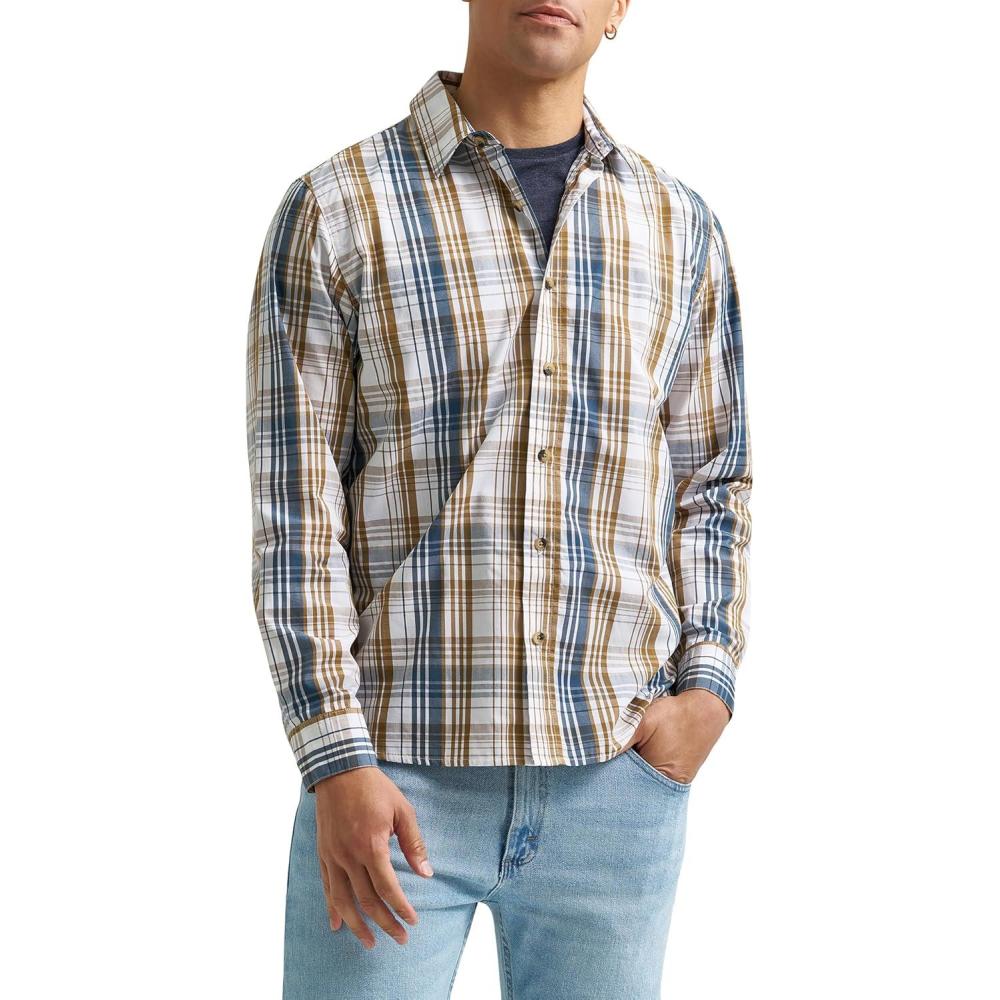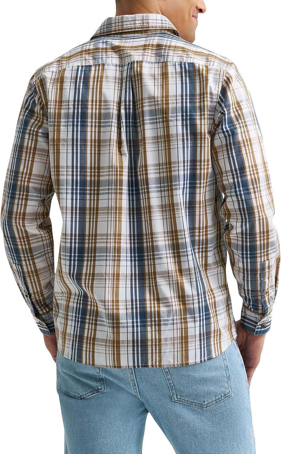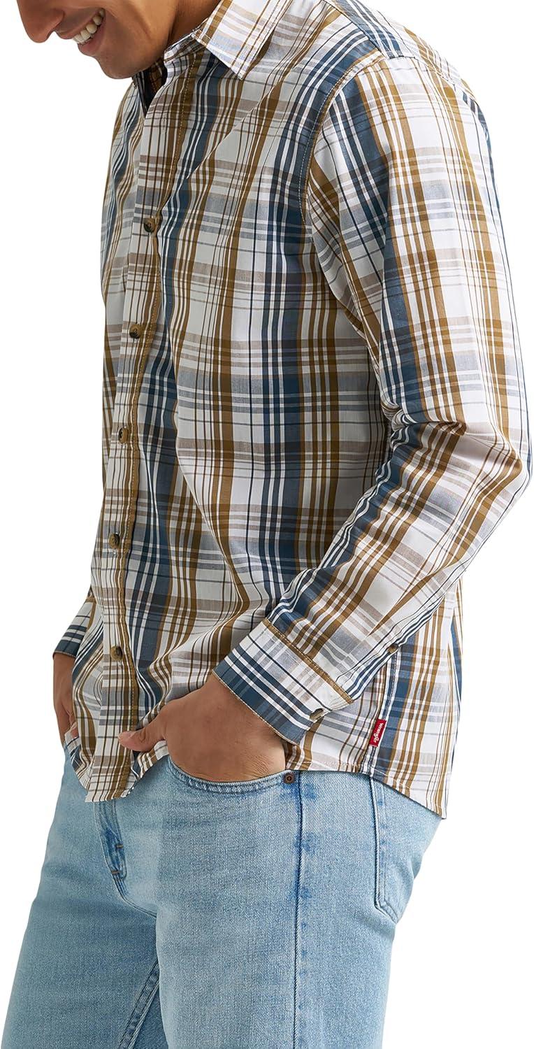 Wrangler Authentics Men’s Long Sleeve Plaid Woven Shirt(Orion Blue Plaid)
