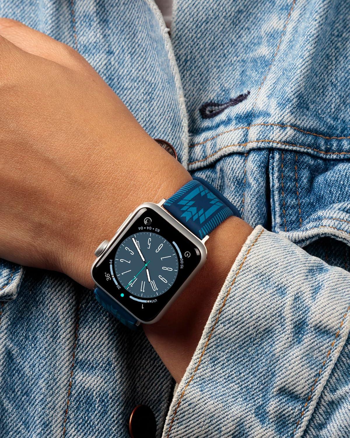 Wrangler® “Aztec Trail” Silicone Band for Apple Watch®, Western Aztec Pattern, Fits all Apple Watch® Series and Sizes(Blue)