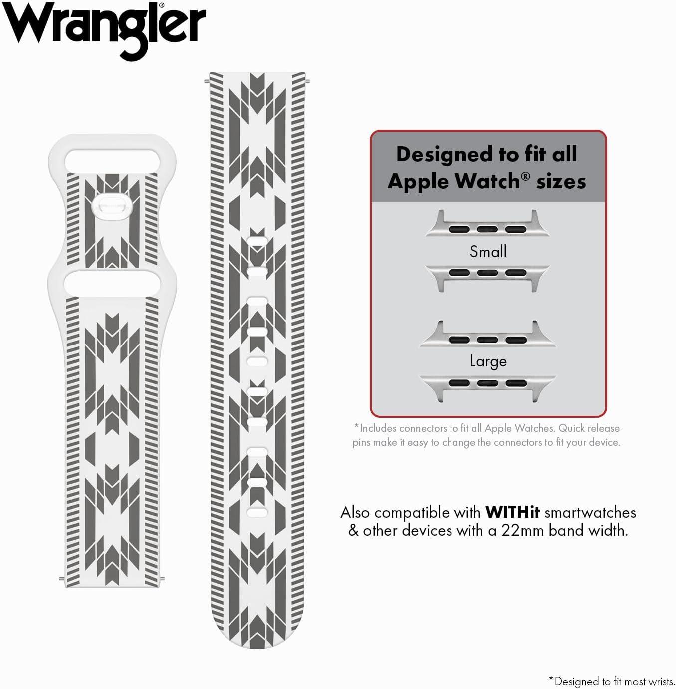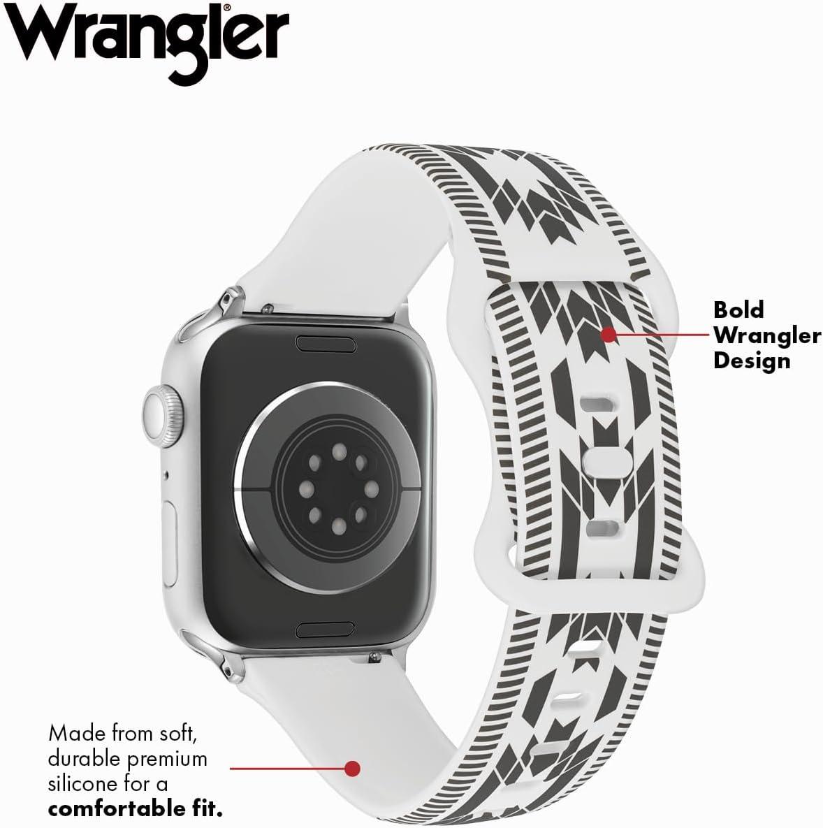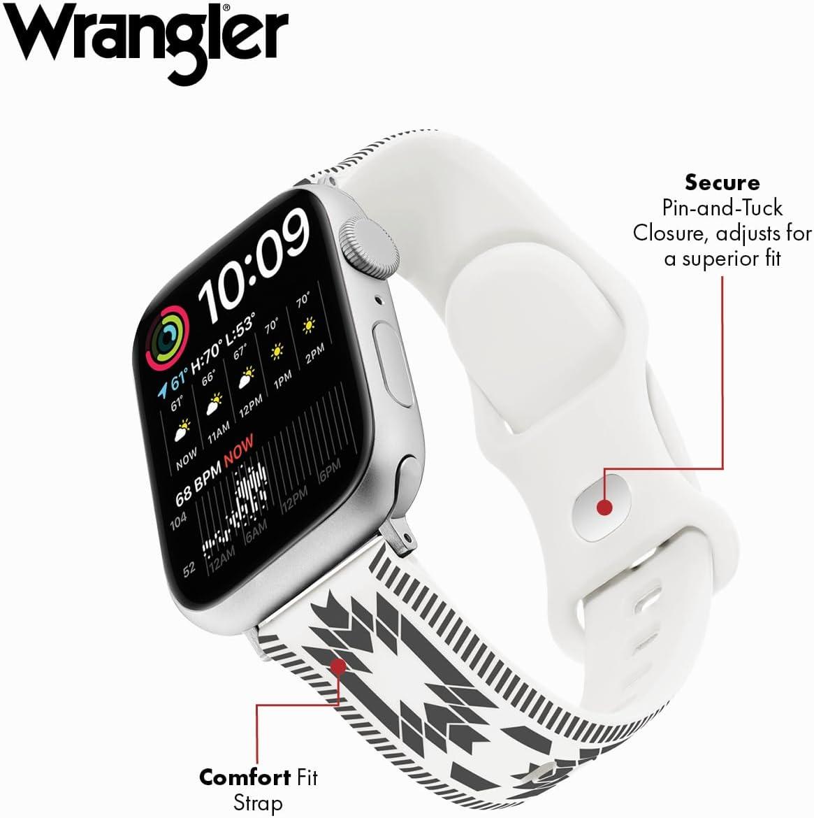 Wrangler® “Aztec Trail” Silicone Band for Apple Watch®, Western Aztec Pattern, Fits all Apple Watch® Series and Sizes(White)