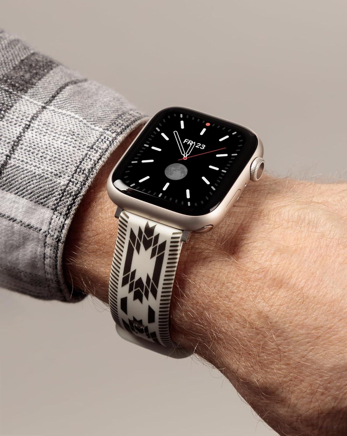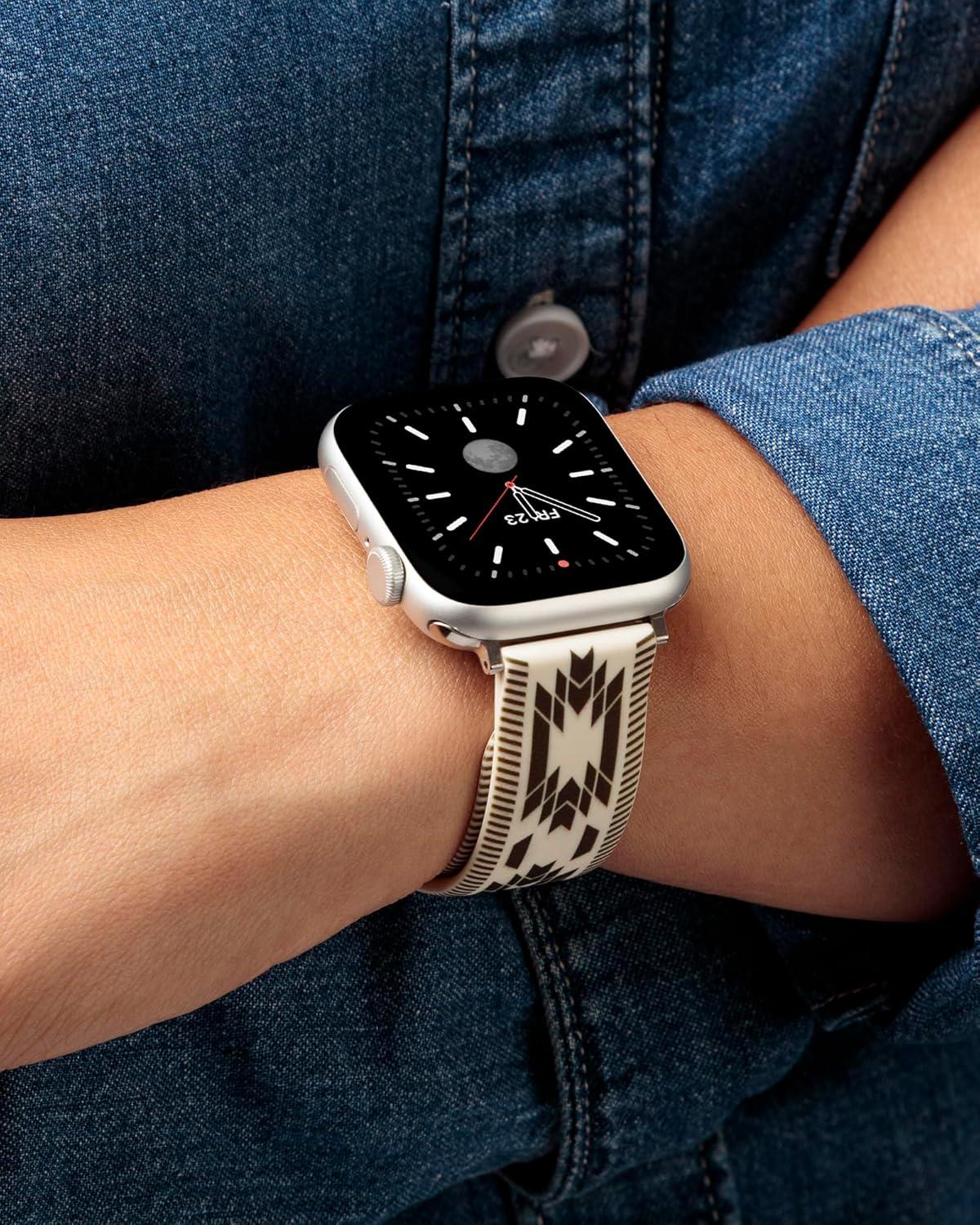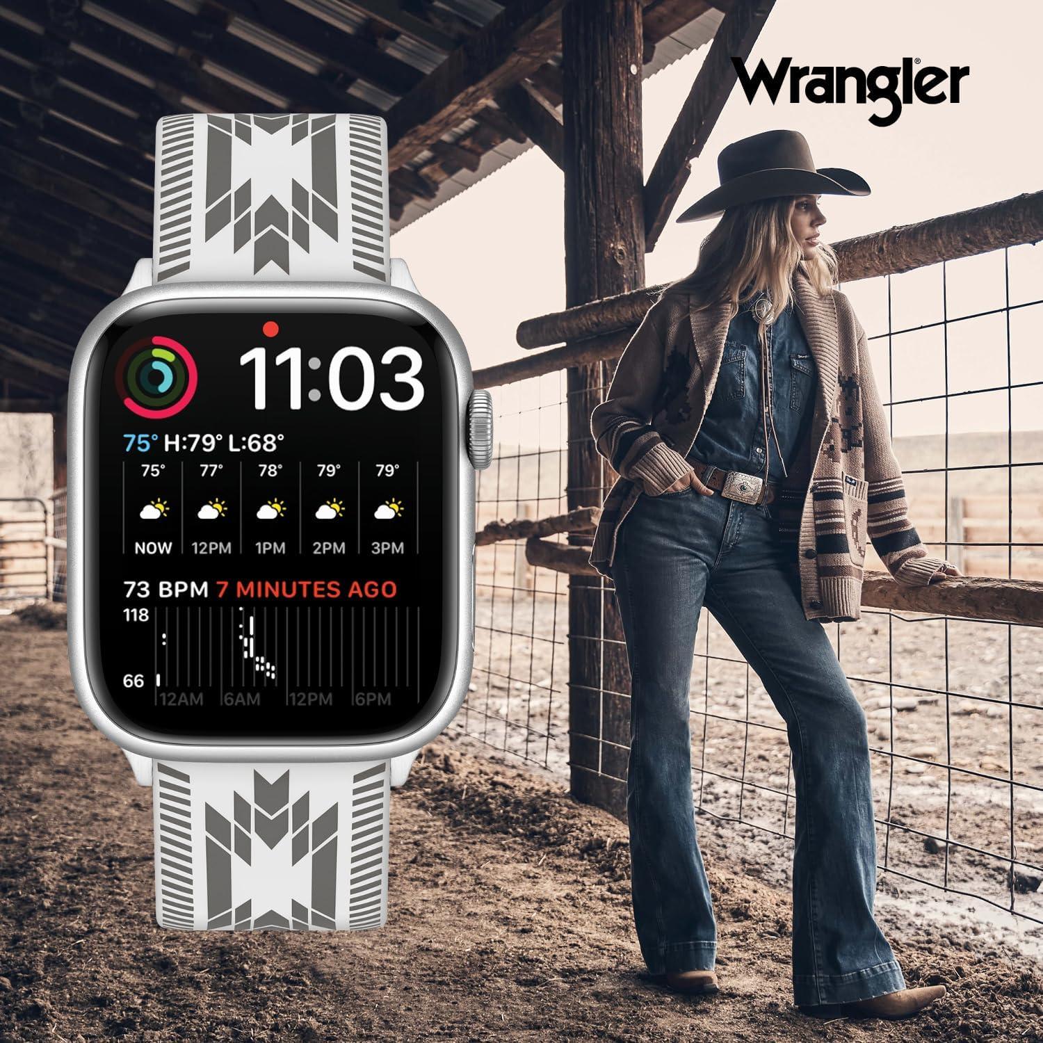 Wrangler® “Aztec Trail” Silicone Band for Apple Watch®, Western Aztec Pattern, Fits all Apple Watch® Series and Sizes(White)