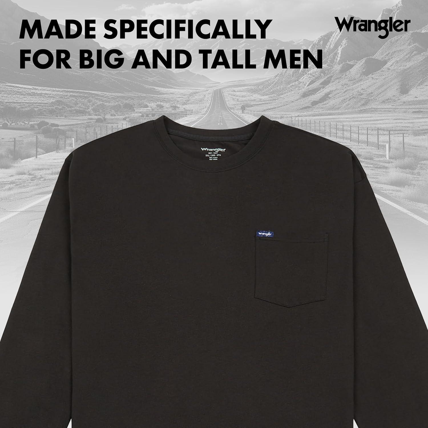 Wrangler Big and Tall Heavyweight Long Sleeve Pocket T-Shirt for Men(Black)