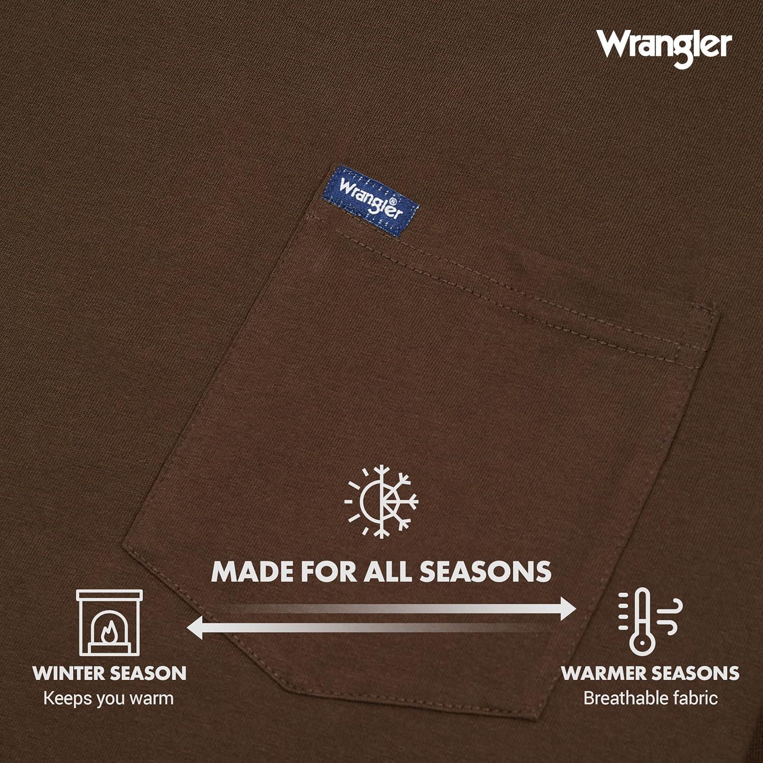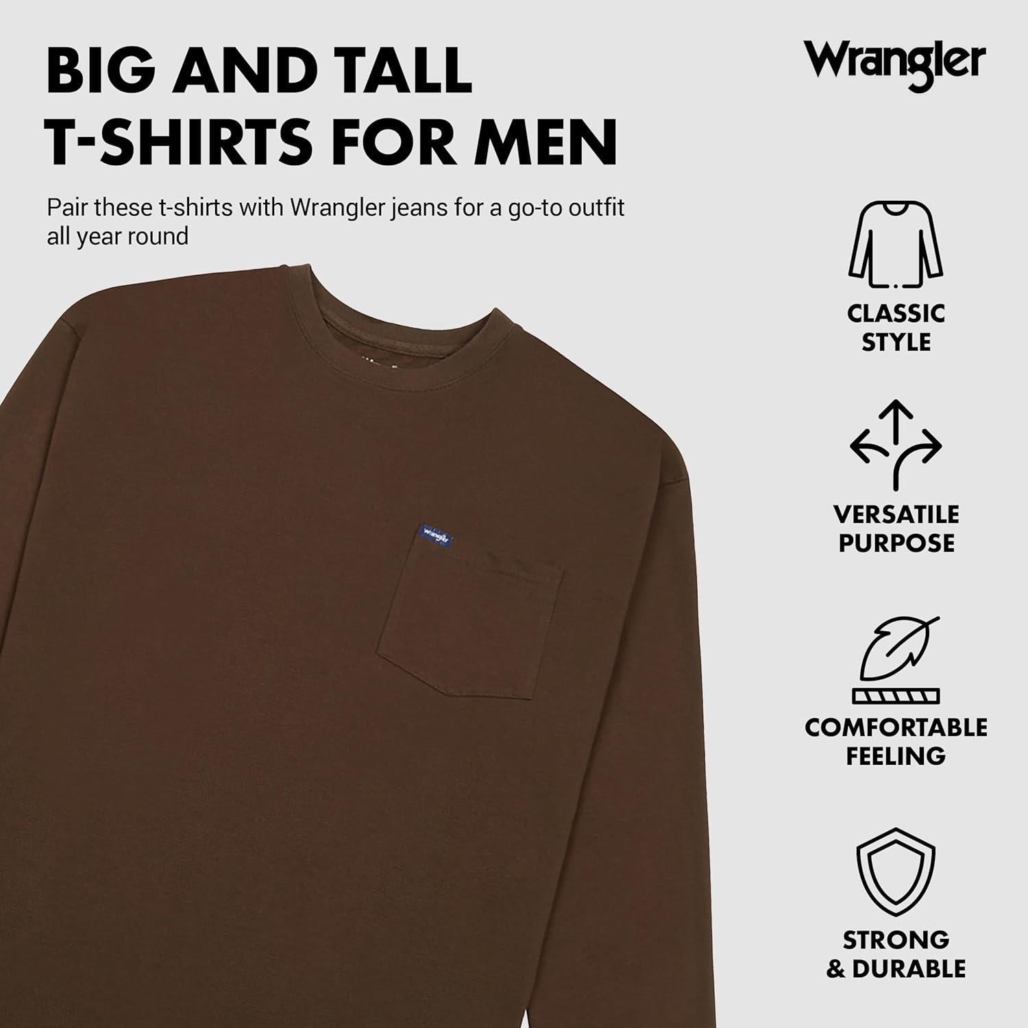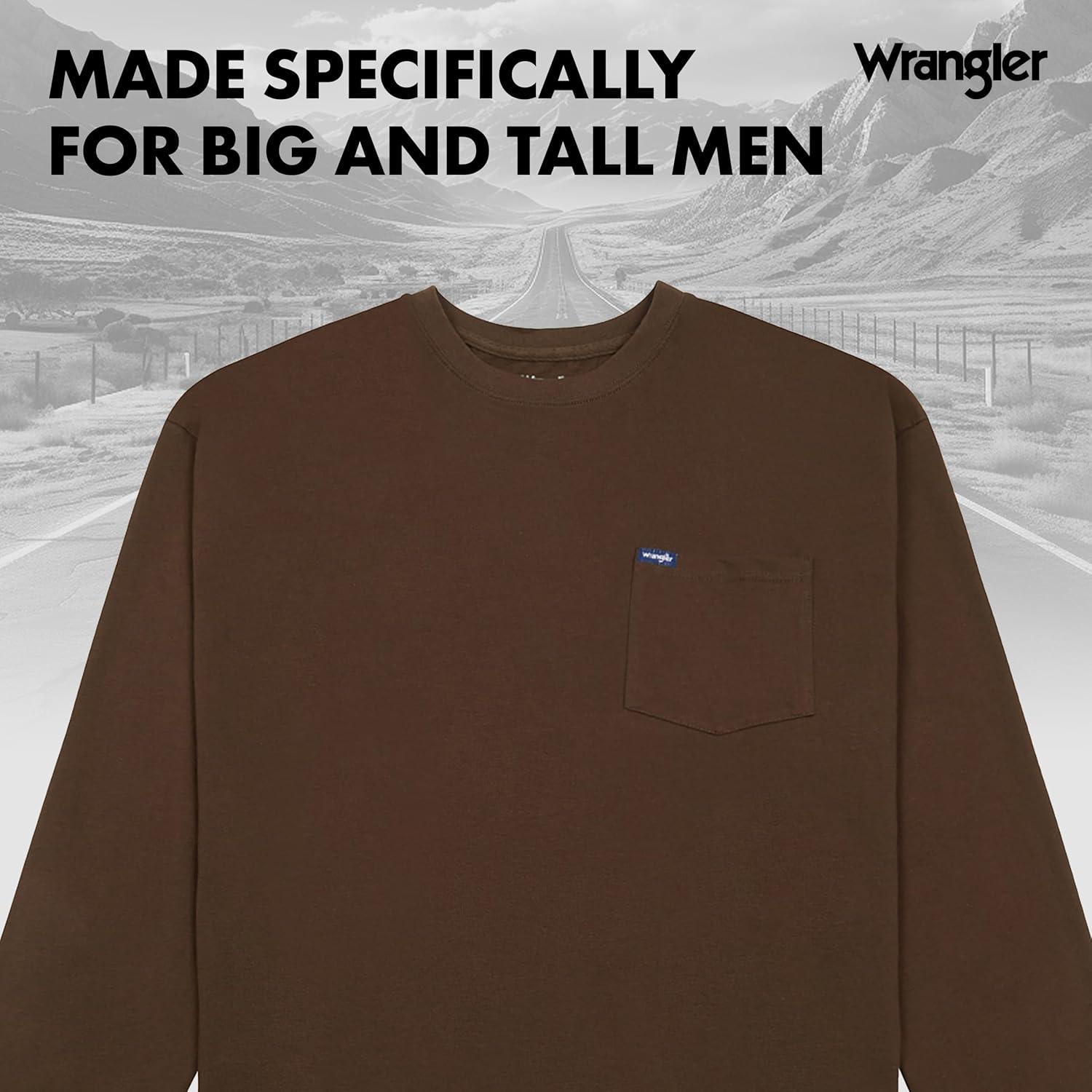 Wrangler Big and Tall Heavyweight Long Sleeve Pocket T-Shirt for Men(Brown)