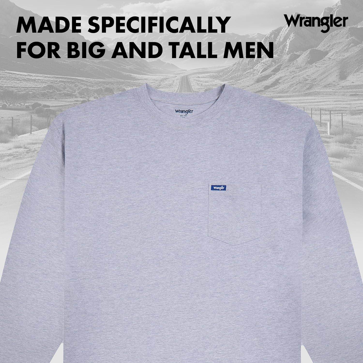 Wrangler Big and Tall Heavyweight Long Sleeve Pocket T-Shirt for Men(Heather Grey)