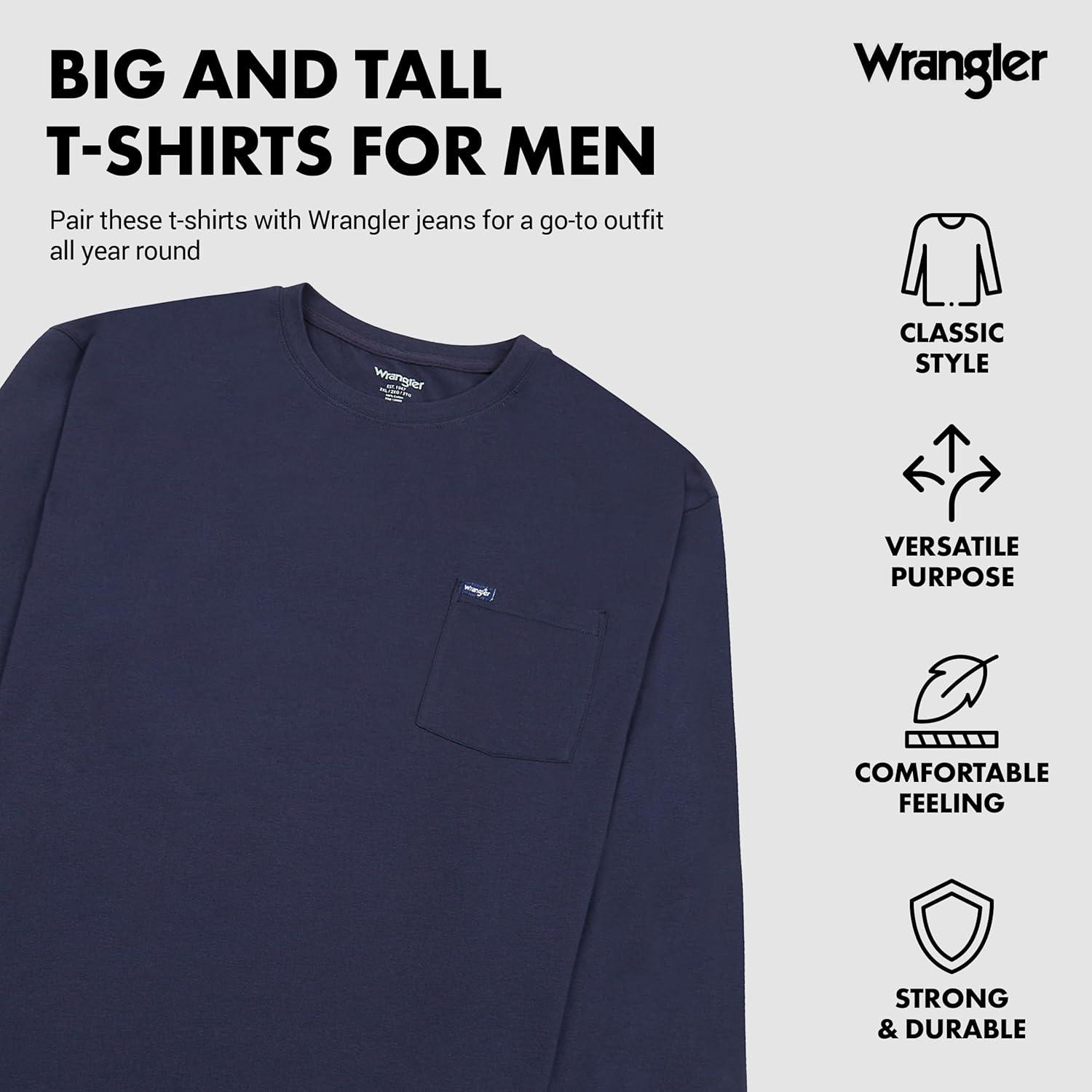 Wrangler Big and Tall Heavyweight Long Sleeve Pocket T-Shirt for Men
