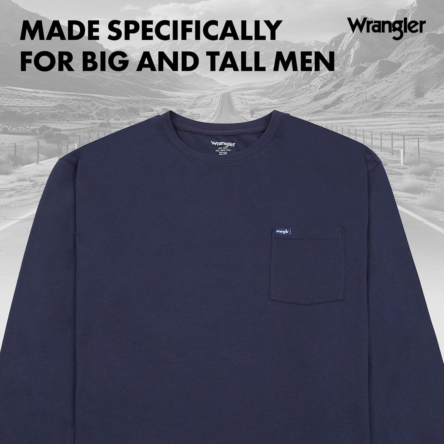 Wrangler Big and Tall Heavyweight Long Sleeve Pocket T-Shirt for Men(Navy)
