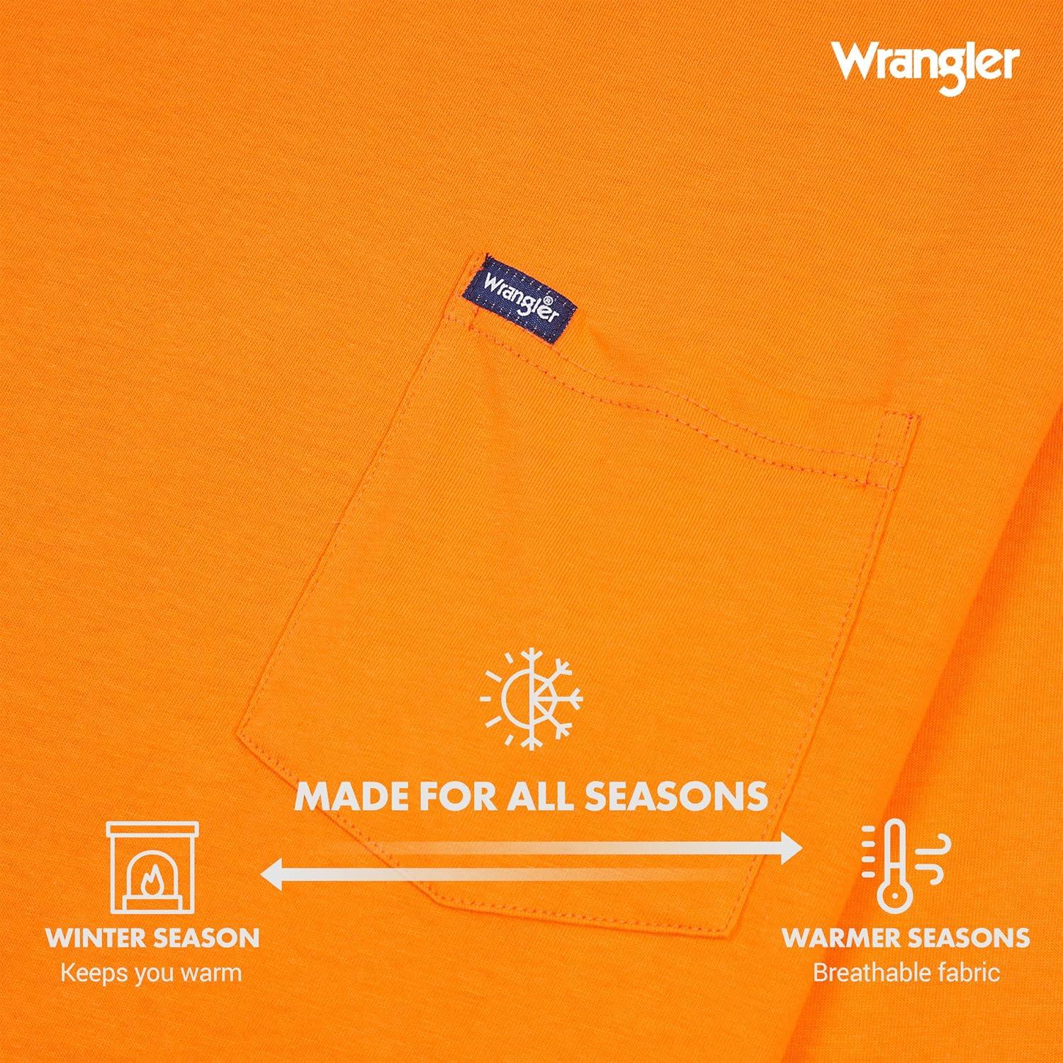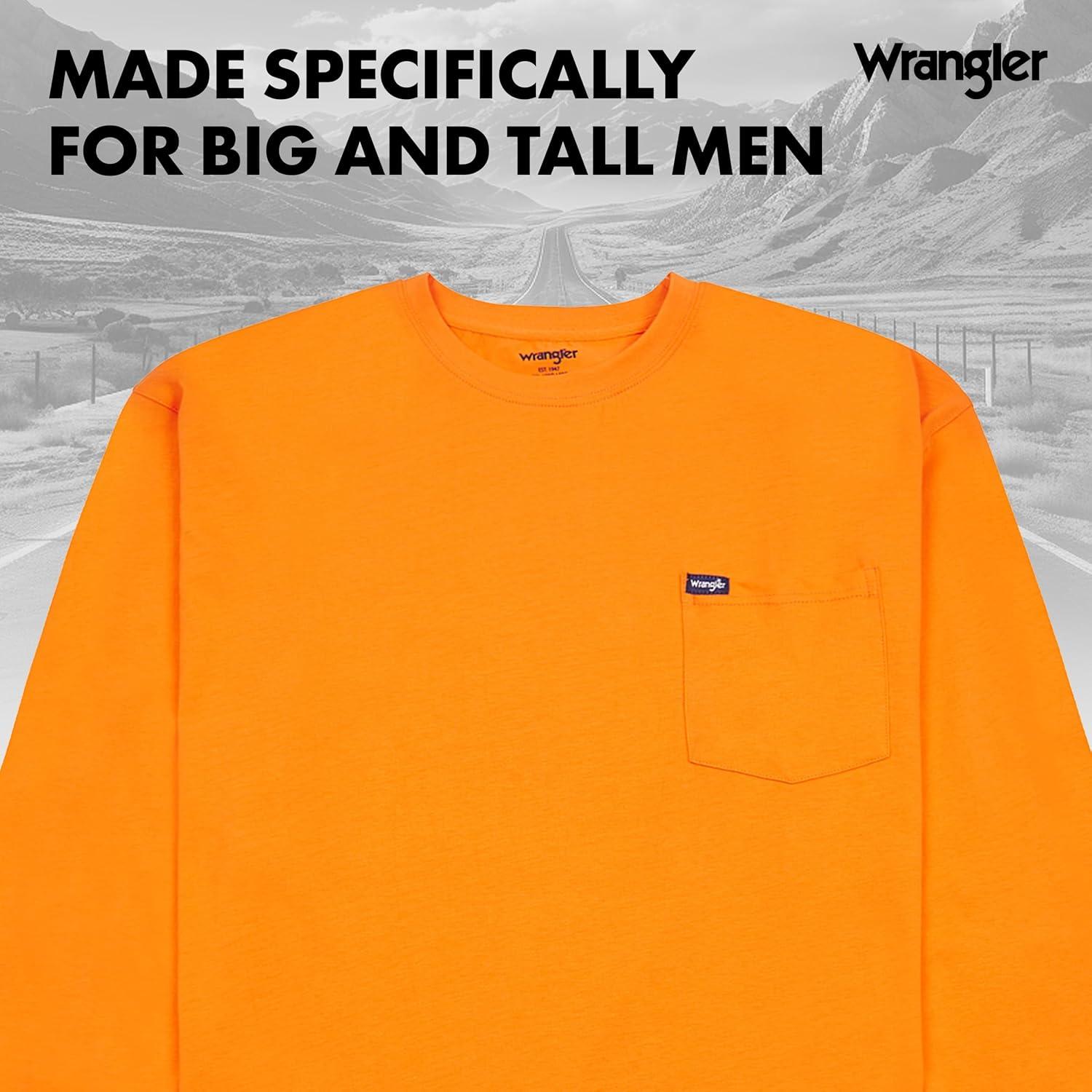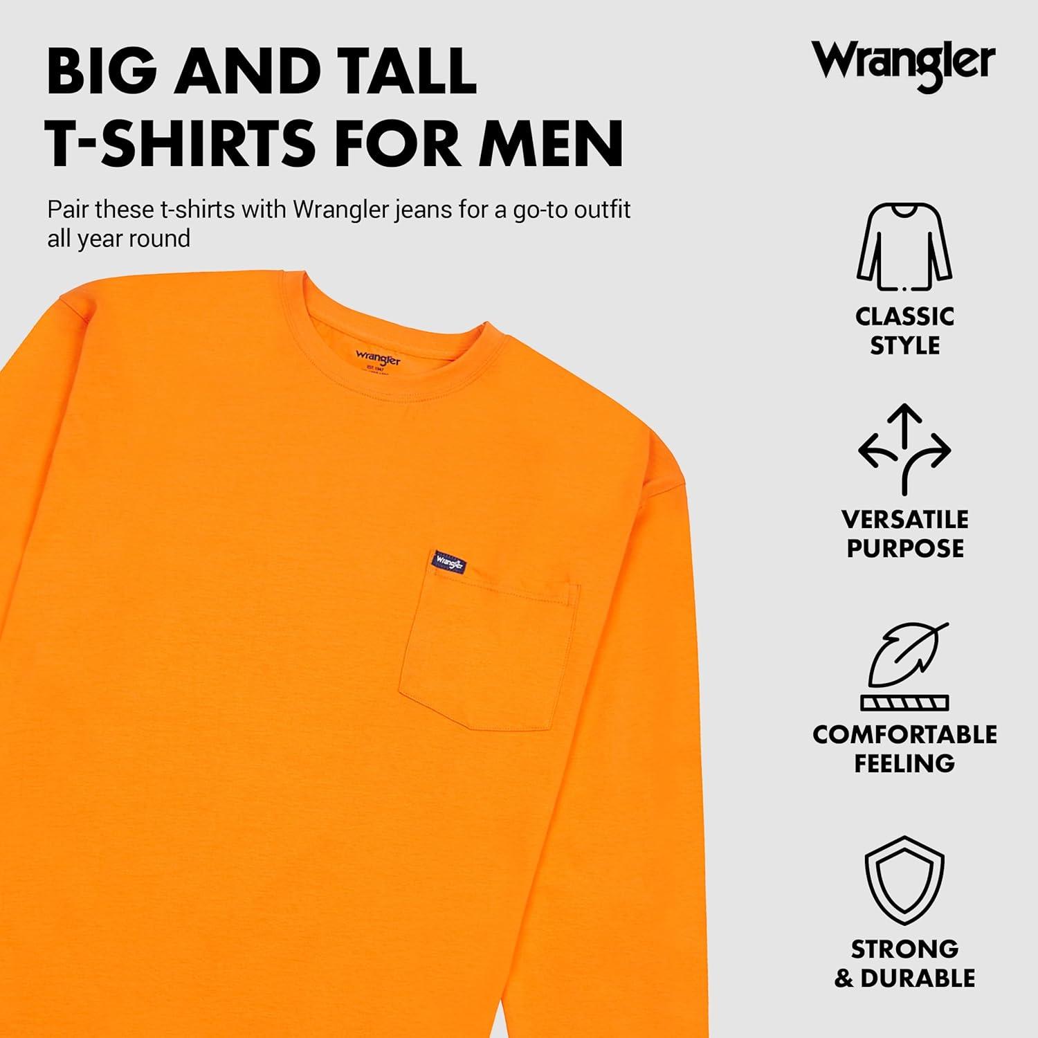 Wrangler Big and Tall Heavyweight Long Sleeve Pocket T-Shirt for Men(Orange)