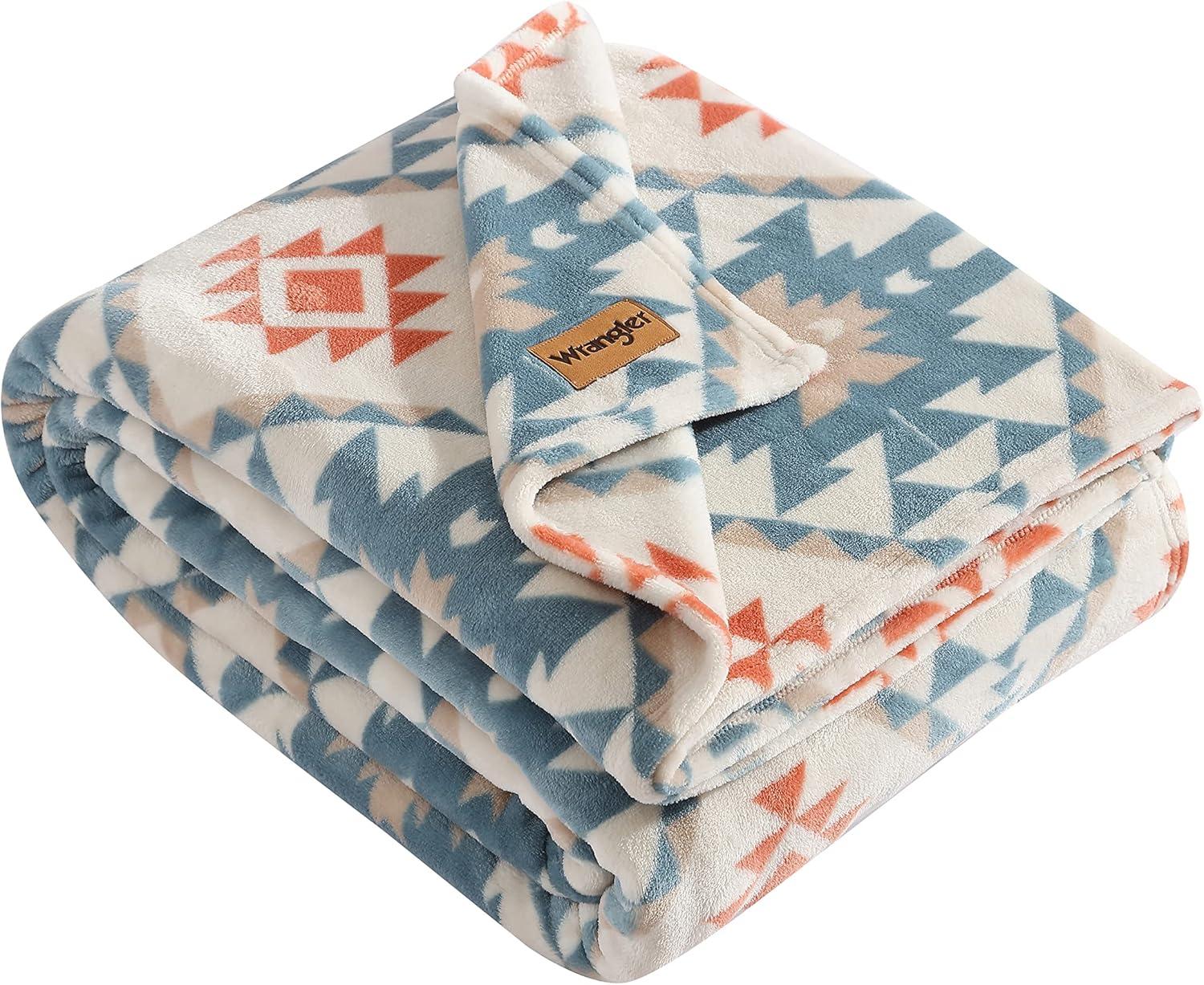 Wrangler – Blanket, Ultra Soft Plush Fleece Bedding, Yellowstone Inspired, Luxuriously Soft Bedding for Bed or Couch (Jericho Peach Pink, Full/Queen)(Dakota Blue)