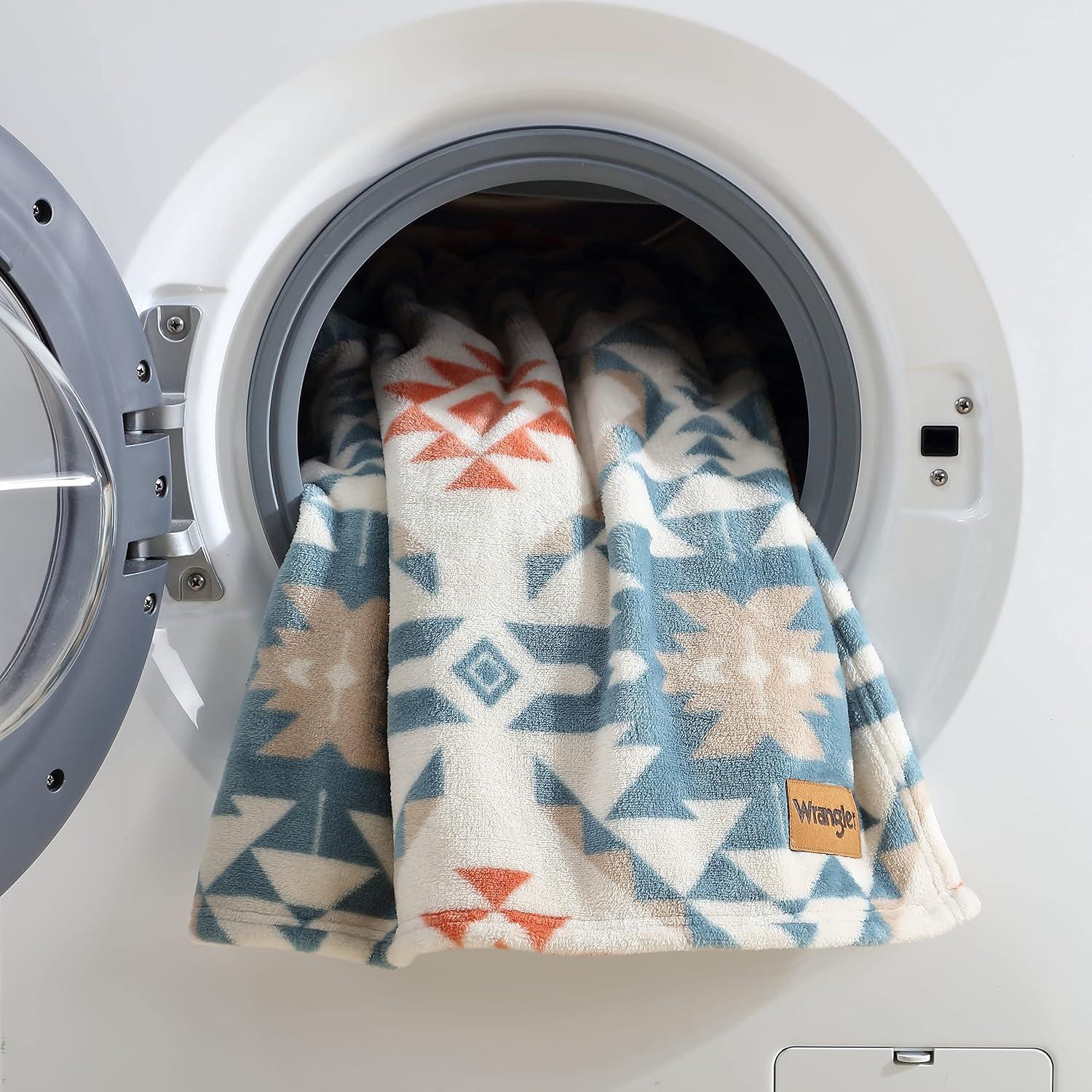 FEATURES: 100% Premium Polyester Plush Construction-with an ultra soft and cozy feel; self-hem detailing and an iconic Wrangler branded logo patch in faux leather; Perfect layering piece for your bedding ensemble
