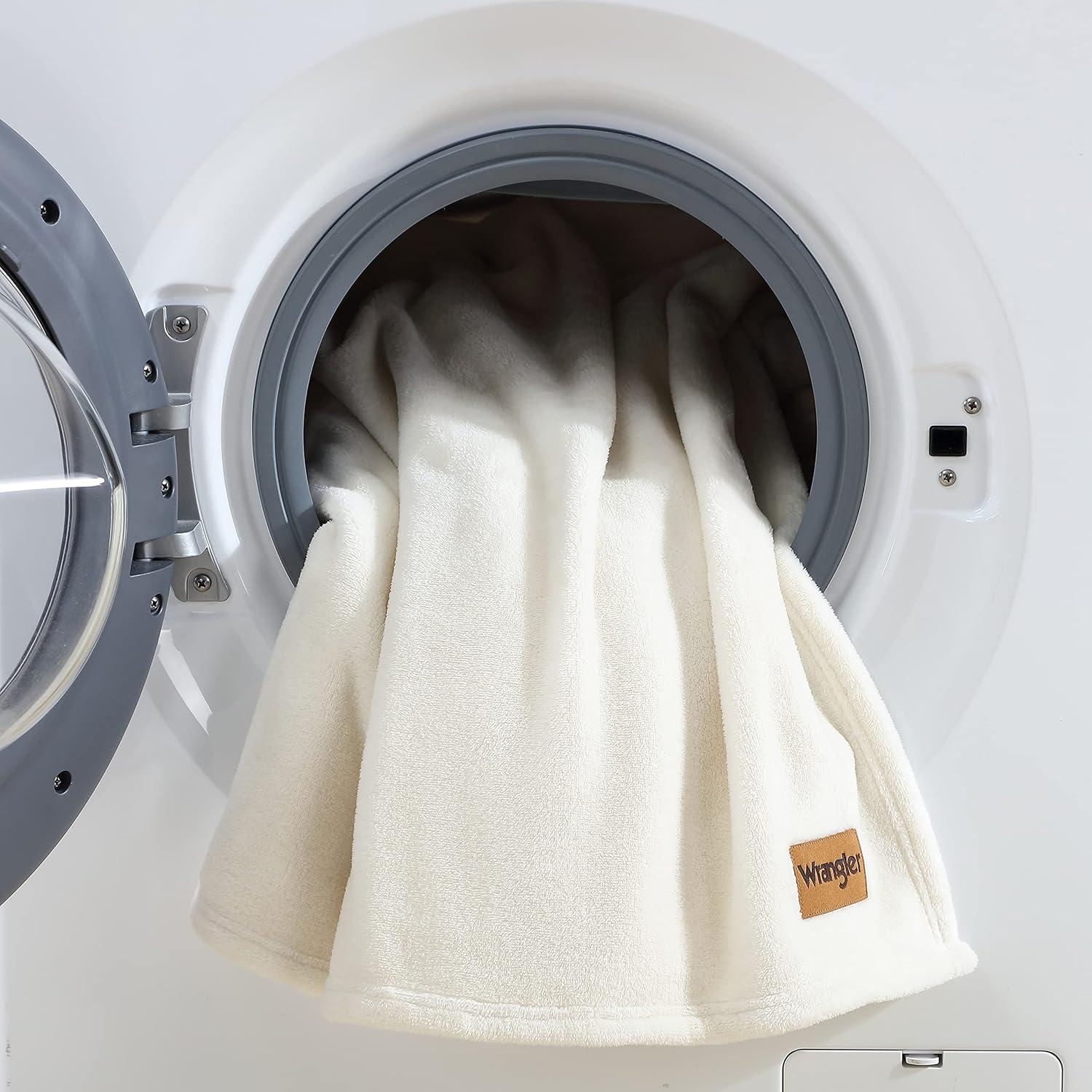 FEATURES: 100% Premium Polyester Plush Construction-with an ultra soft and cozy feel; self-hem detailing and an iconic Wrangler branded logo patch in faux leather; Perfect layering piece for your bedding ensemble