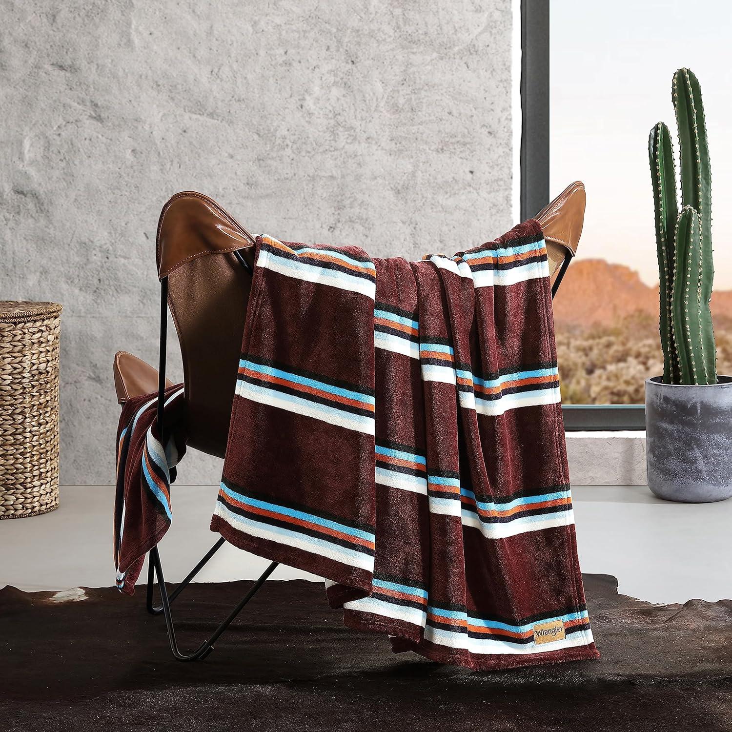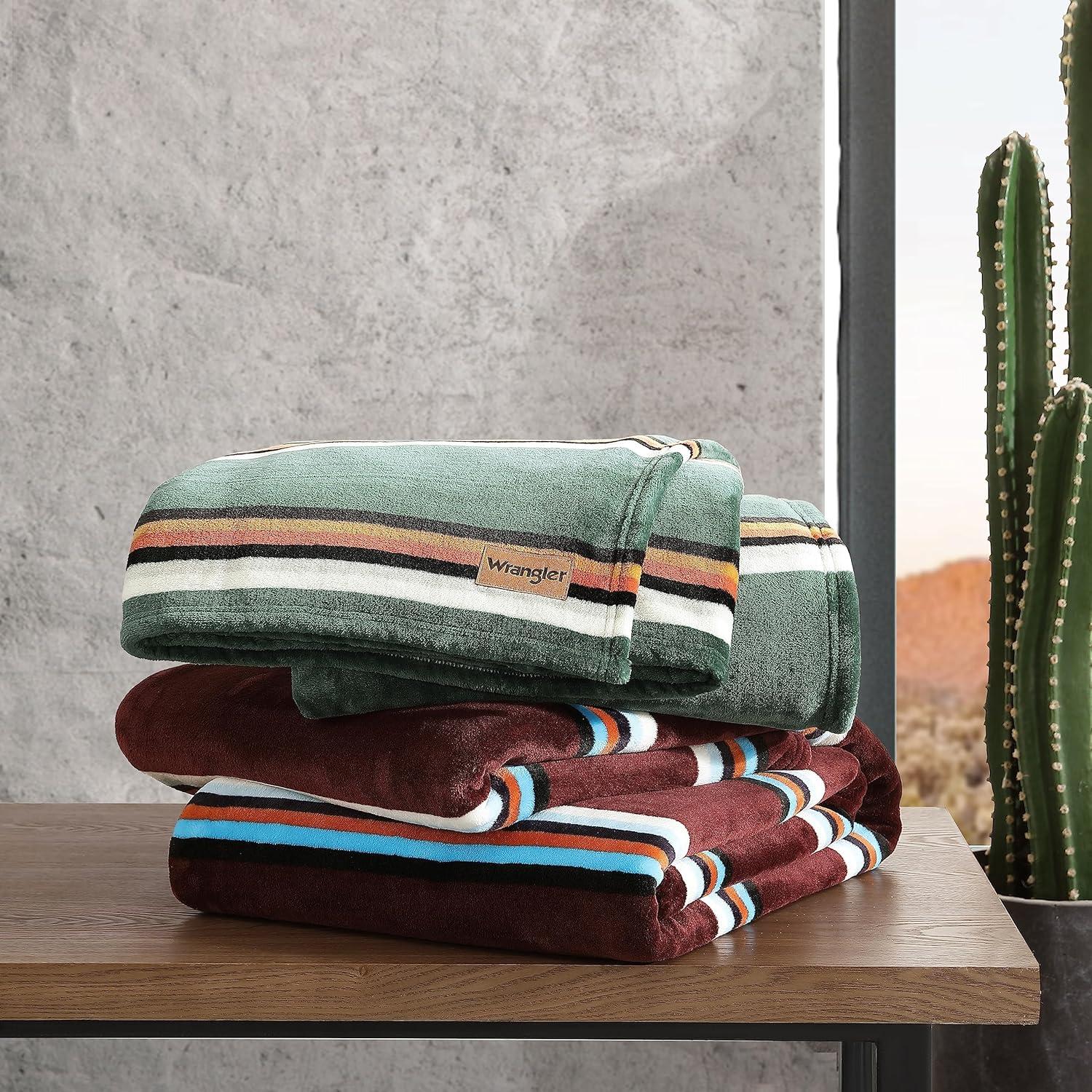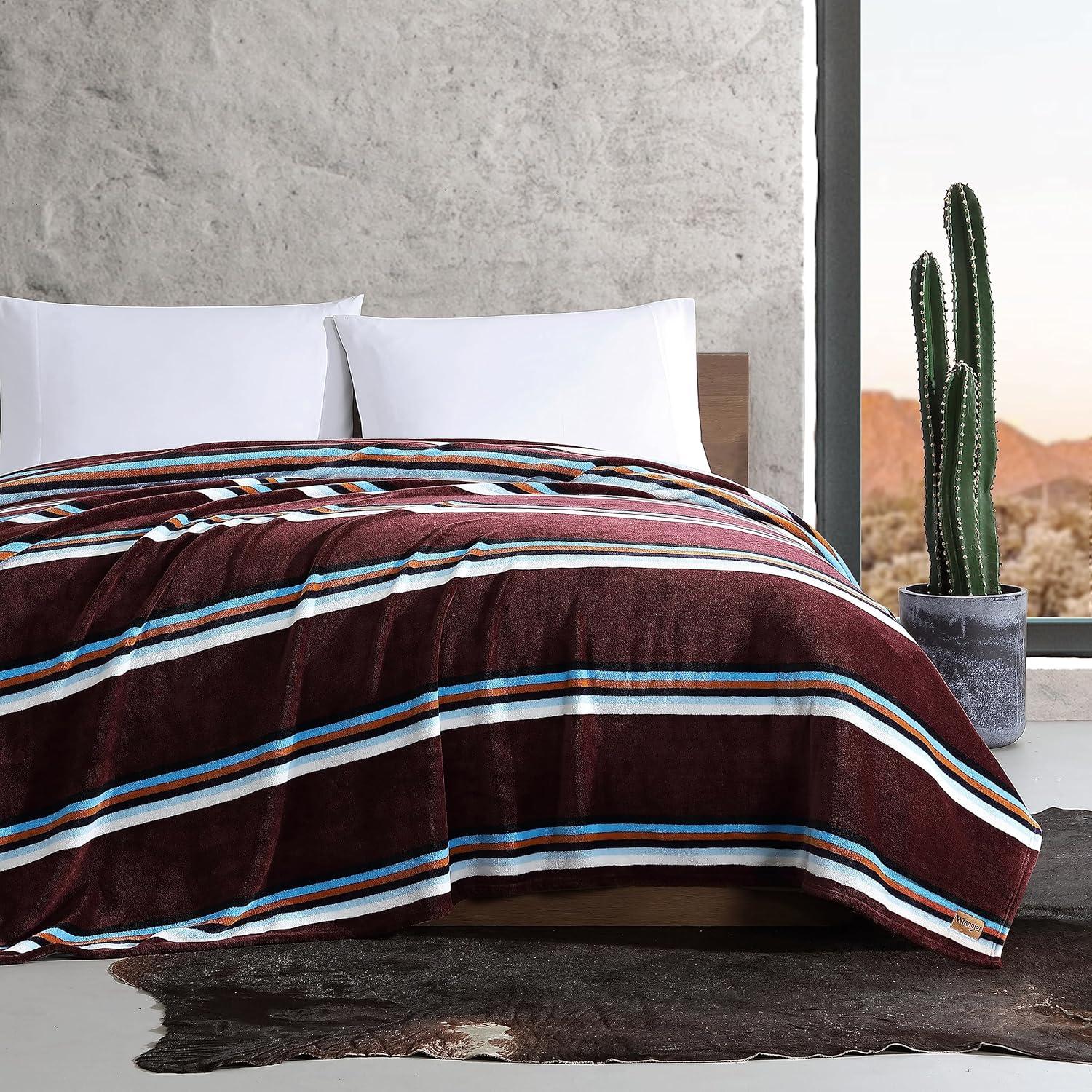 Wrangler – Blanket, Ultra Soft Plush Fleece Bedding, Yellowstone Inspired, Luxuriously Soft Bedding for Bed or Couch (Jericho Peach Pink, Full/Queen)(Western Saddle Stripe Red)