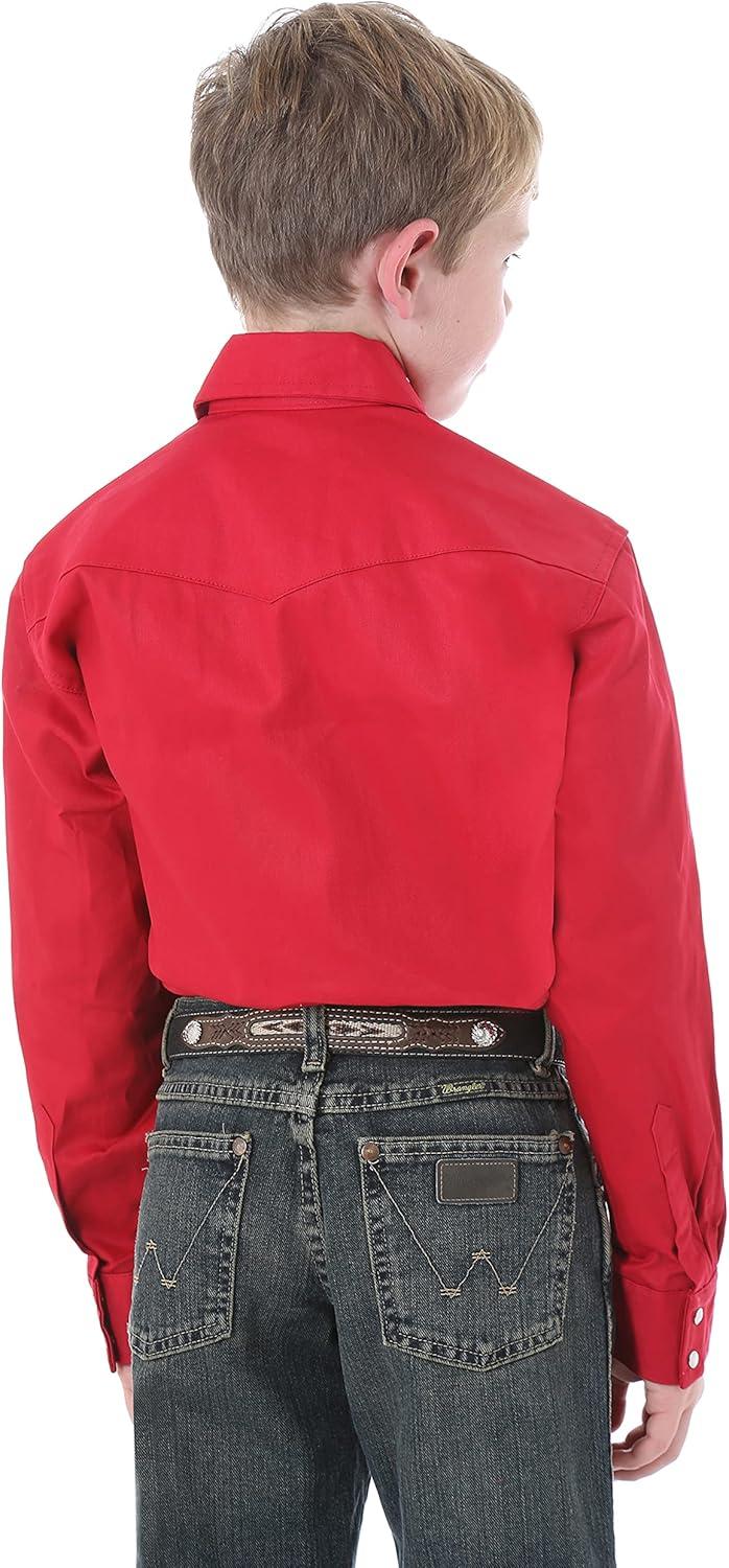 Wrangler Boy’s Long Sleeve White Snap Shirt(Red)