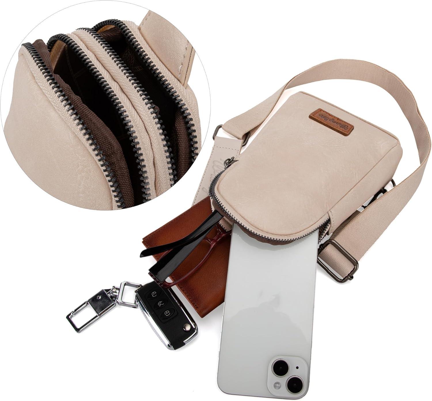 Wrangler Crossbody Sling Bag for Women Fanny Packs Chest Bags for Travel(Classic-beige)