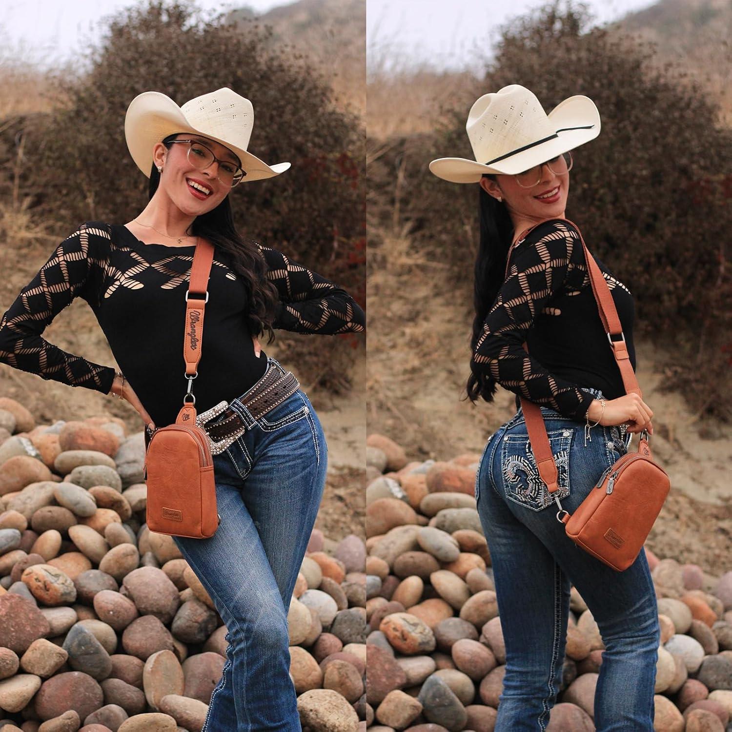 Wrangler Crossbody Sling Bag for Women Fanny Packs Chest Bags for Travel(*Classic-brown)