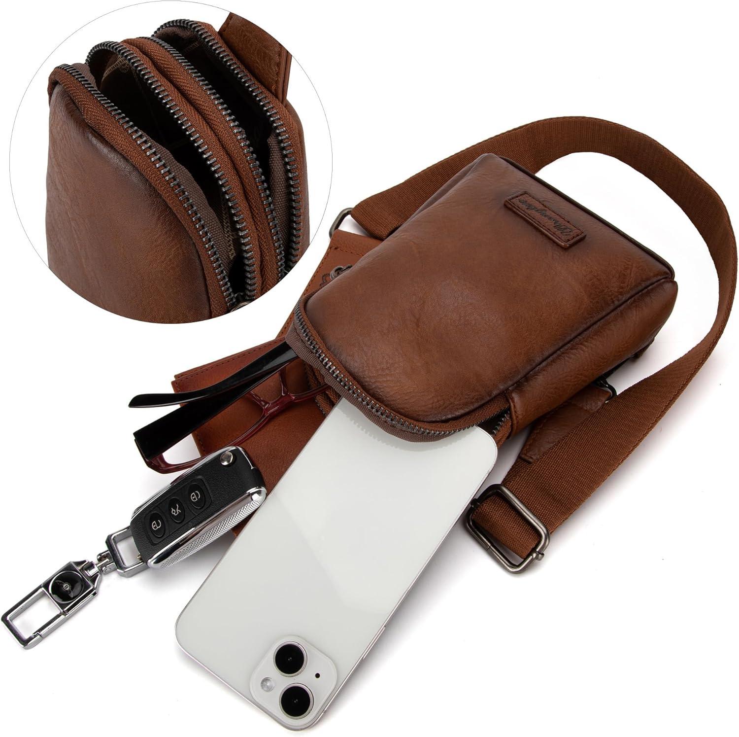 Wrangler Crossbody Sling Bag for Women Fanny Packs Chest Bags for Travel(Classic-caramel Brown Distressed)