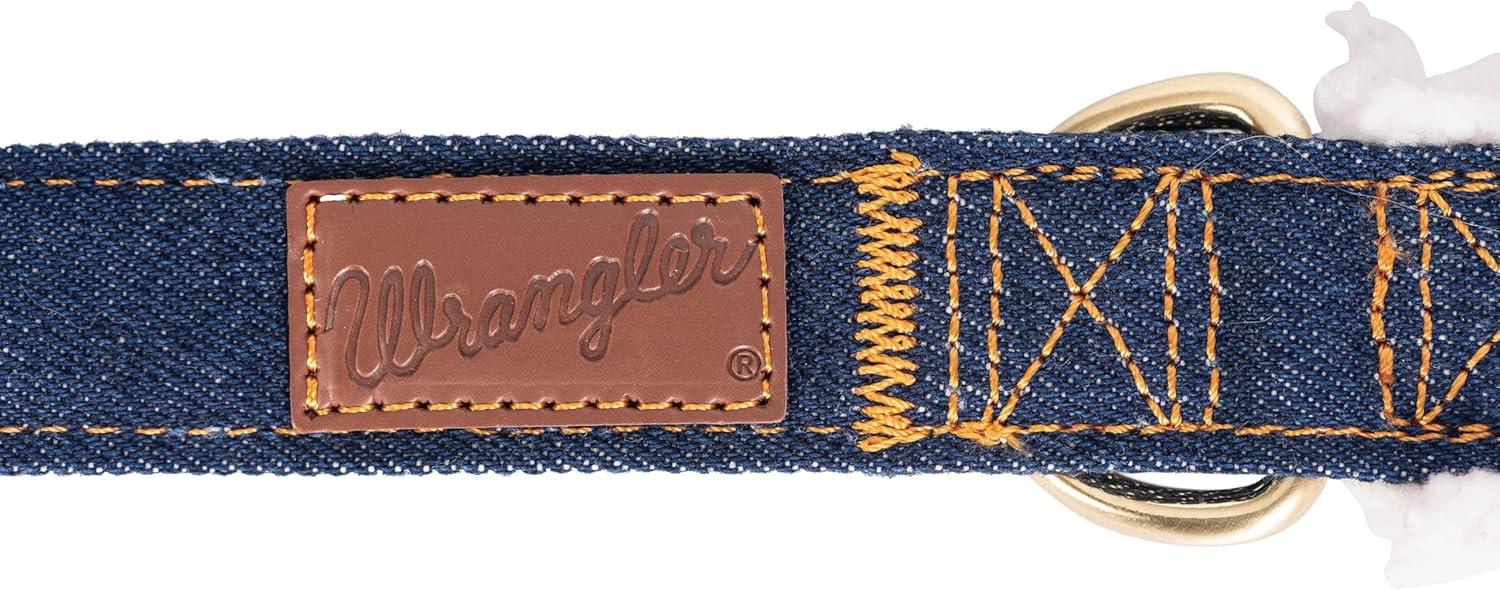 Wrangler PetDark Wash Denim and Sherpa LeadD-ringLPCL00085Wrangler Dark Wash Denim and Sherpa Lead that has a trigger clasp for quick attachment. Offers the Wrangler logo patch and iconic gold accent stitching. Added D-ring offers a place for walking accessories. Spot clean only. Denim is 100% cotton and sherpa is 100% polyester.LPCL00085