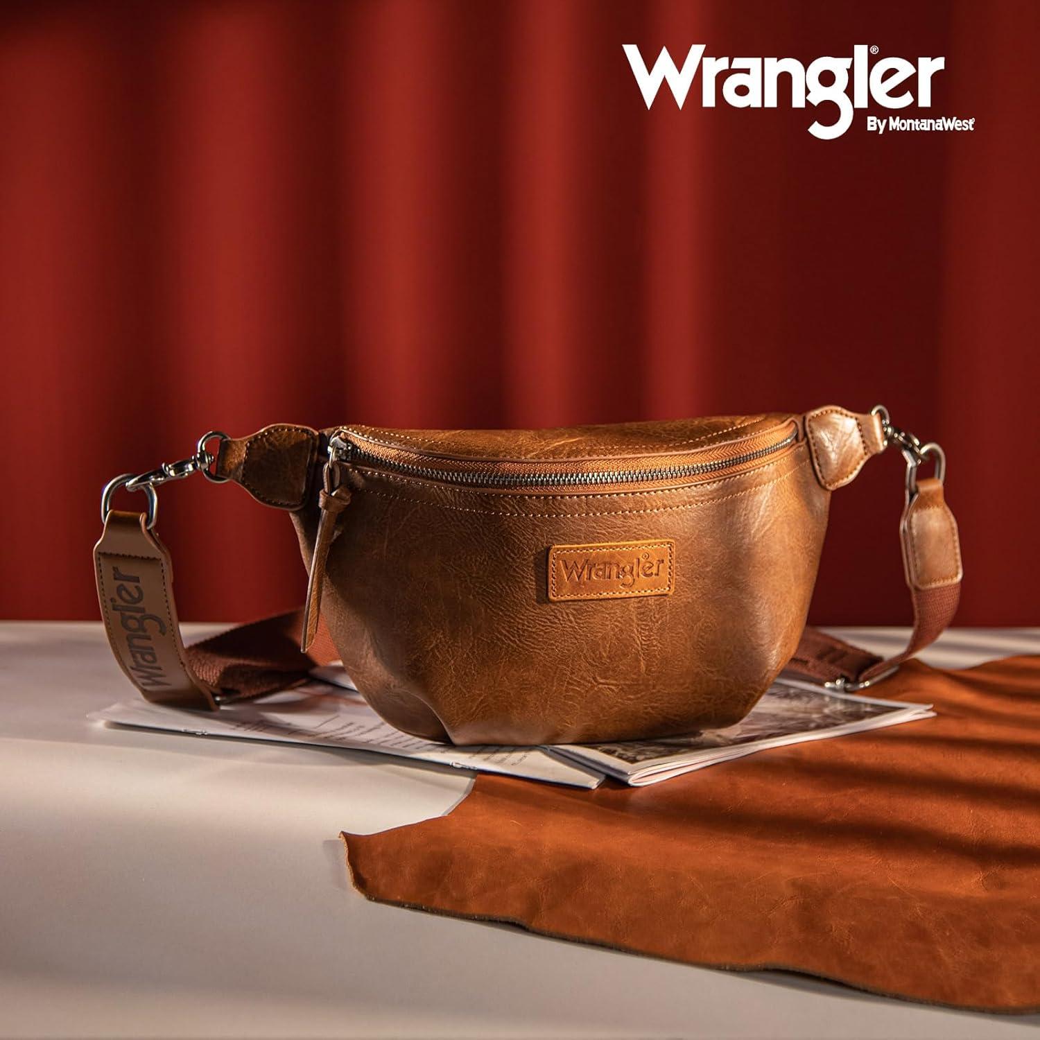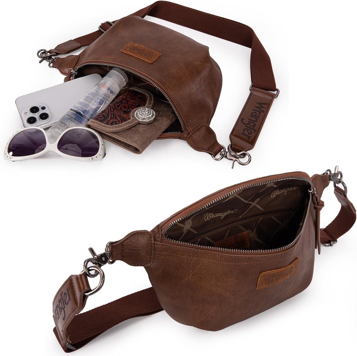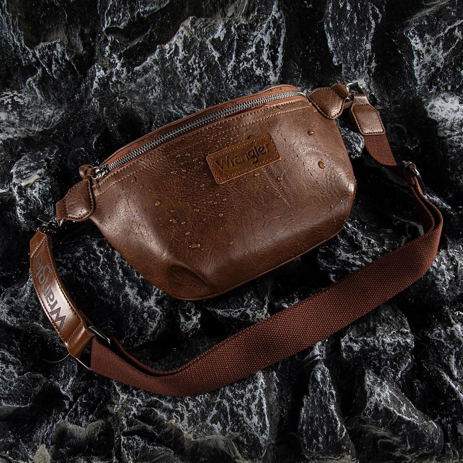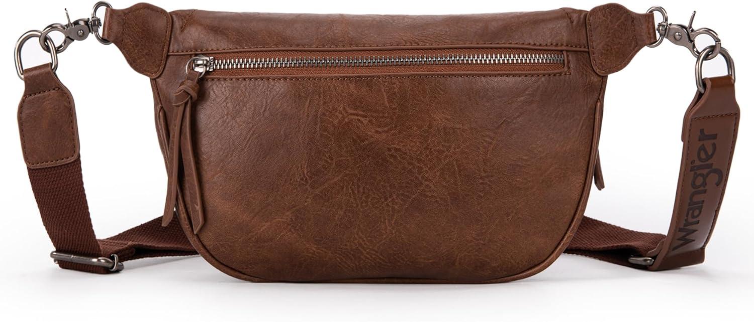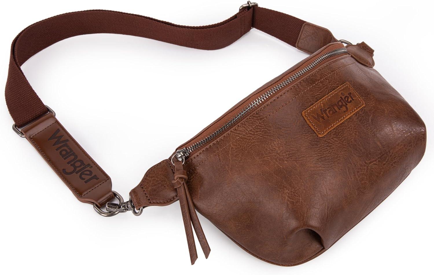 Wrangler Large Fanny Packs for Women Waist Bag Travel Belt Bags Crossbody Sling Purse Black(A-Dark Brown)