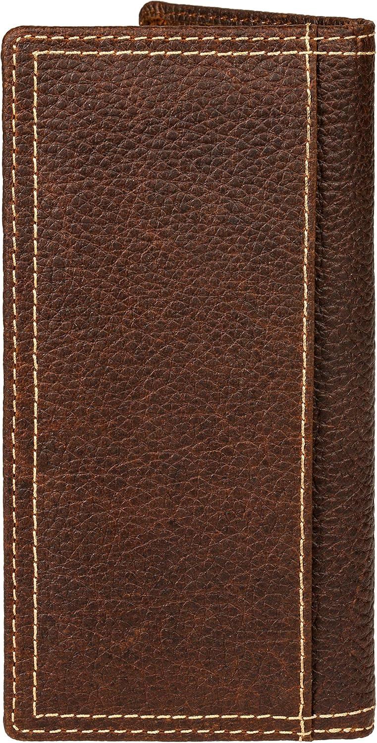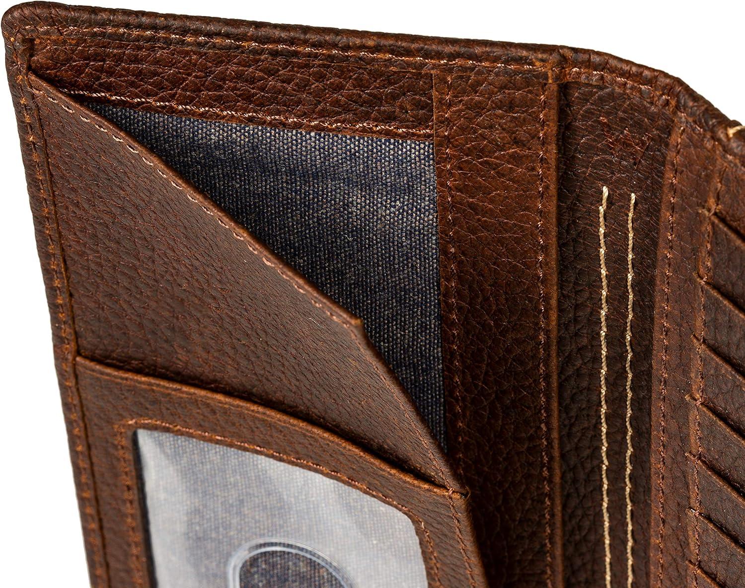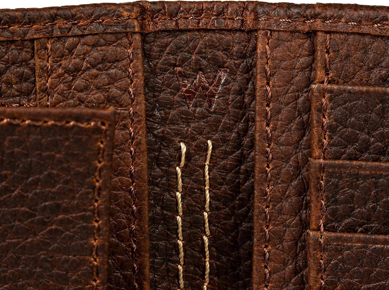 Wrangler Men’s Bifold Wallet with Flip-Out ID Window, Genuine Leather, Gift for Him(Dark Brown Double Stitch)