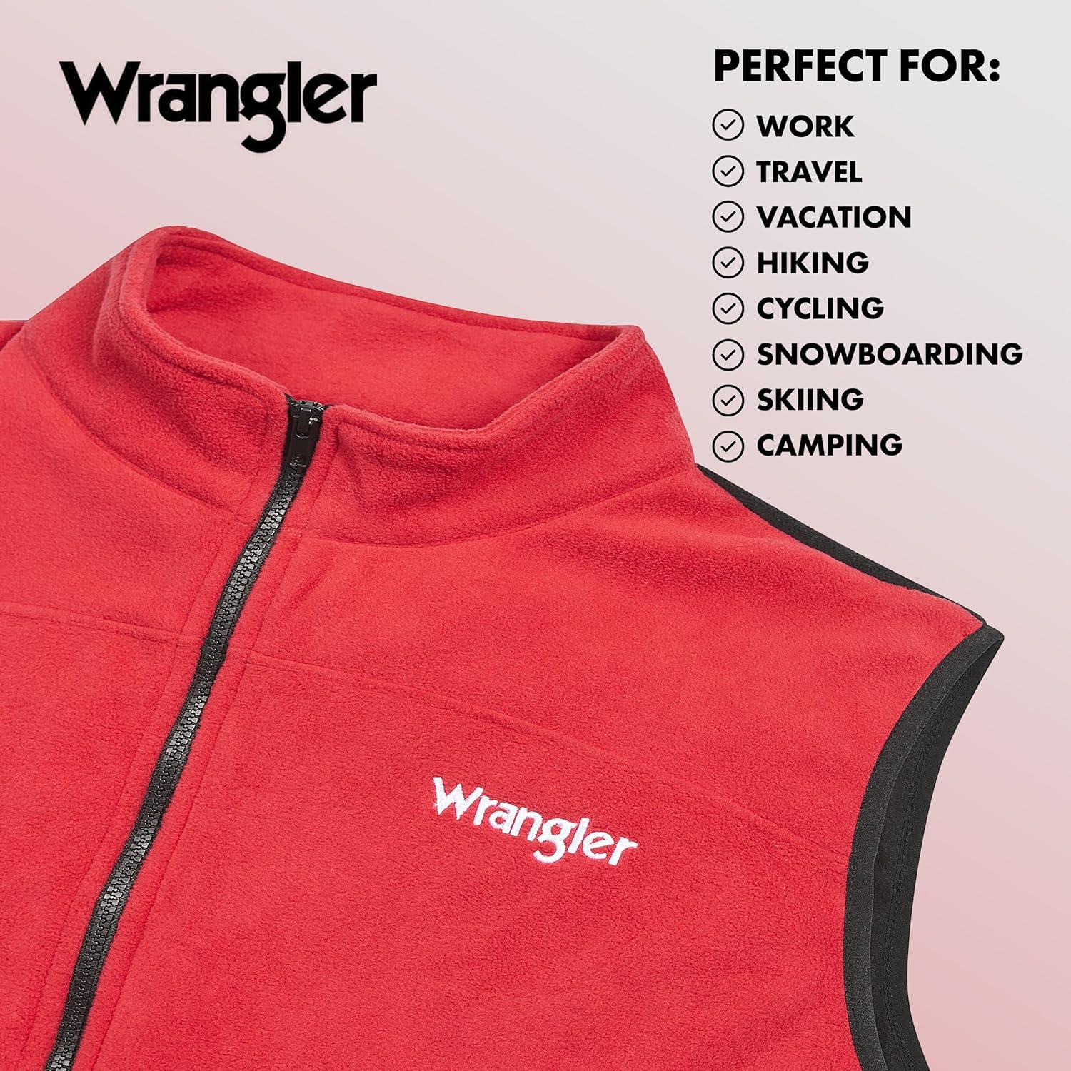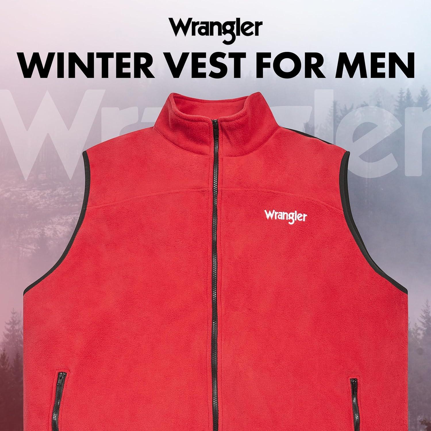 Wrangler Men’s Big and Tall Polar Fleece Zip Up Sleeveless Vest(Card Red/Blk)