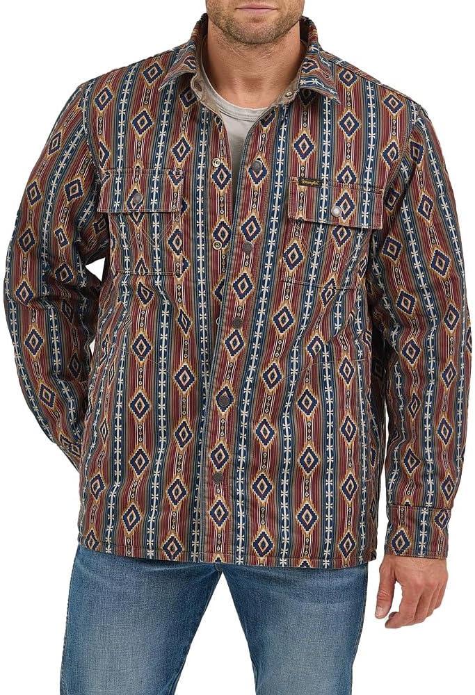 Wrangler Men's Reversible Jacket Color: Chocolate Chip Chest Pockets with Snap Closure Side Entry Welt Pockets Snap Front 100% Cotton 112368205Double up on style and function with the Men’s Chocolate Lined Reversible Jacket. Designed for versatility, this jacket features a rich chocolate brown outer and a fully reversible interior—giving you two looks in one rugged piece. Whether you're working in the field or heading to town, the durable fabric, warm lining, and classic Western construction make it a smart, year-round essential for the modern cowboy.