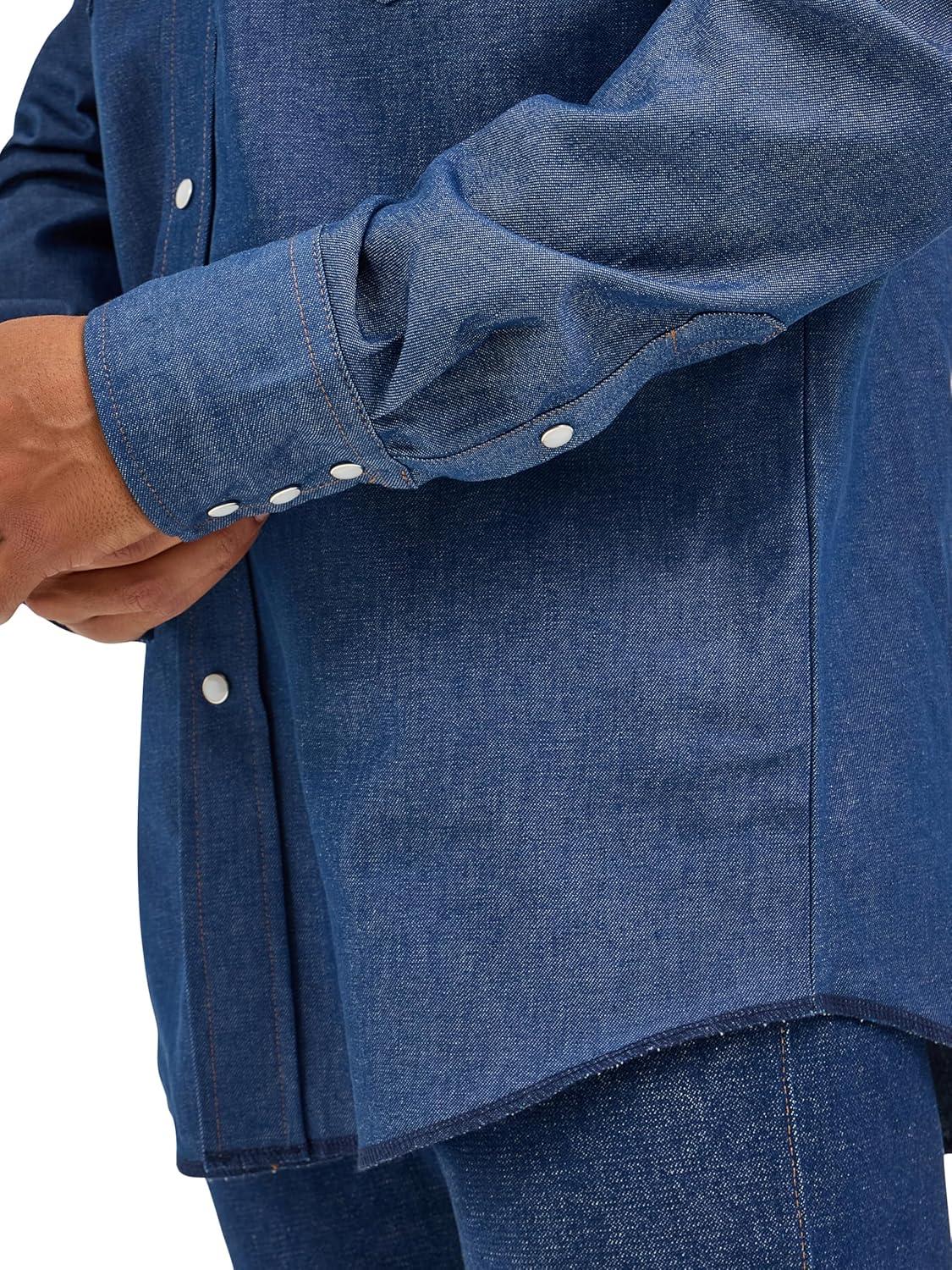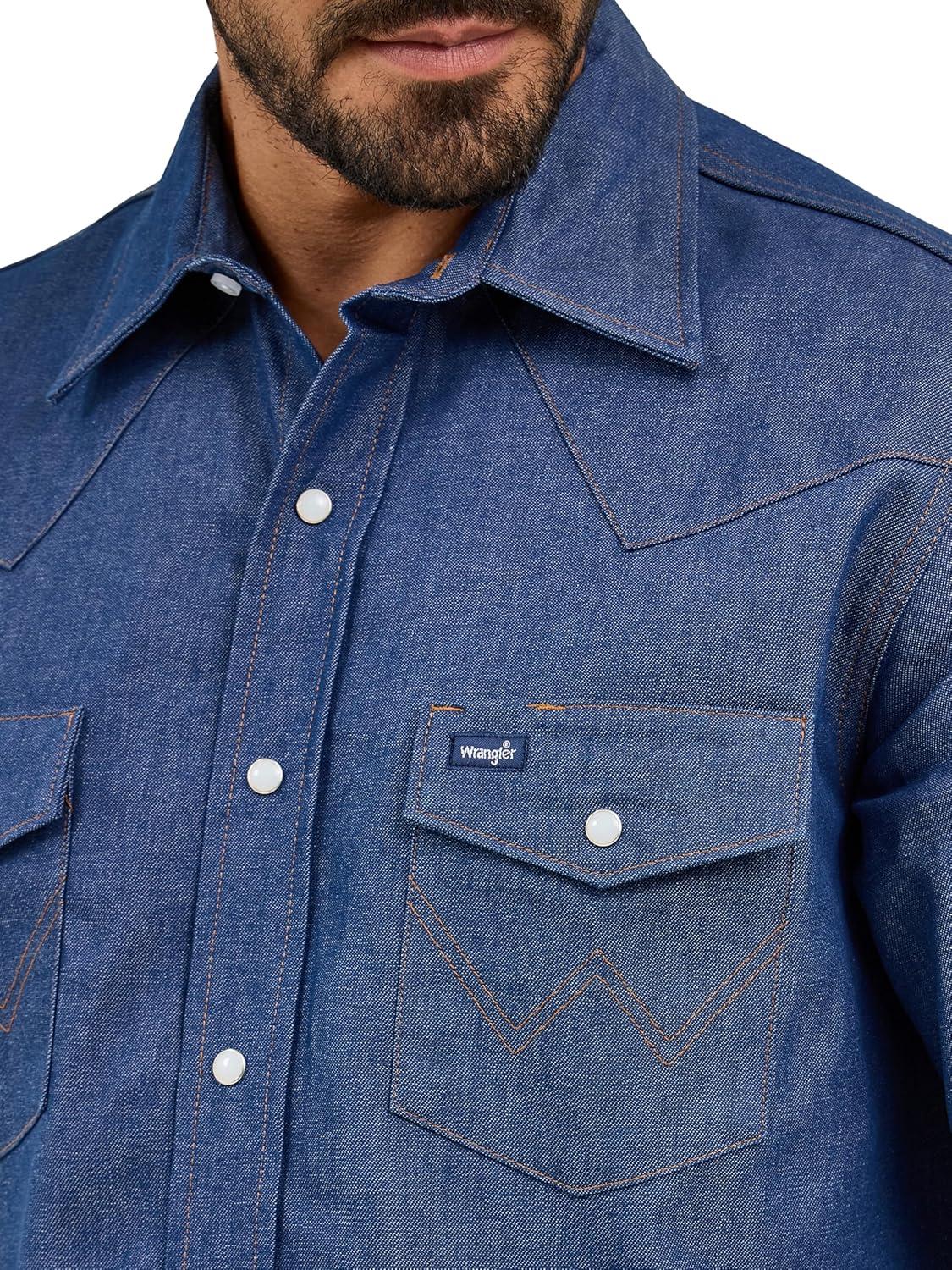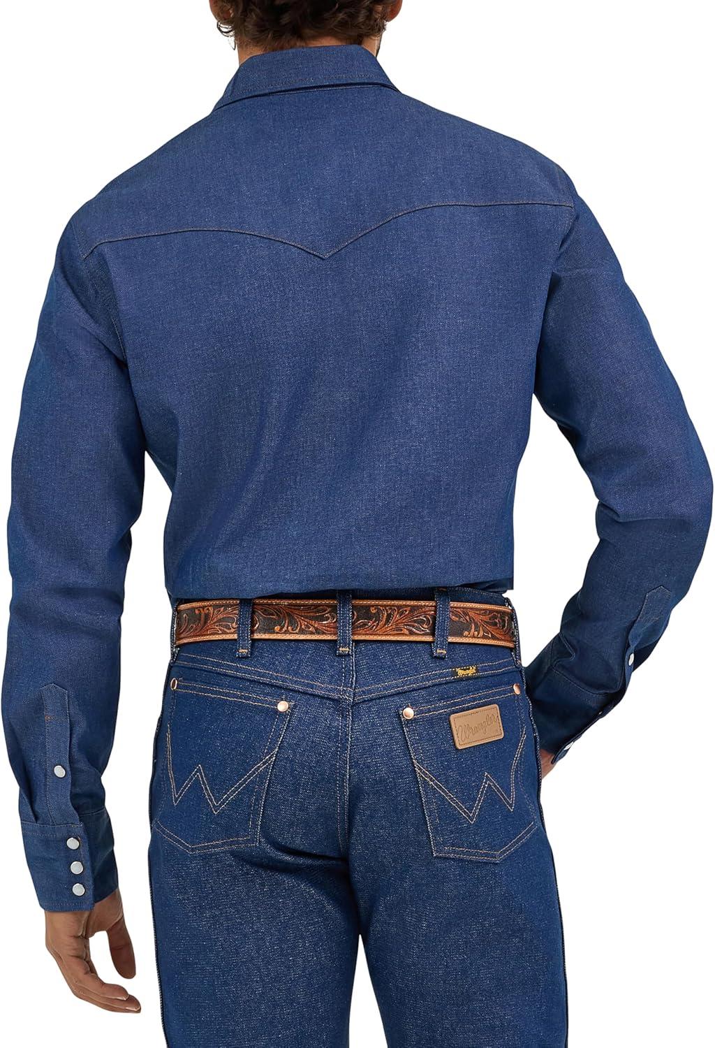 Wrangler Men’s Cowboy Cut Western Chambray Snap Long Sleeve Work Shirt(Darkest Indigo)