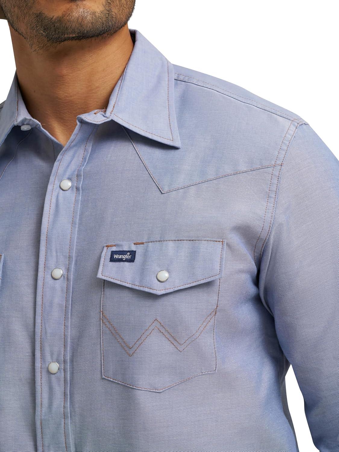 Wrangler Men’s Cowboy Cut Western Chambray Snap Long Sleeve Work Shirt(Light Chambray)