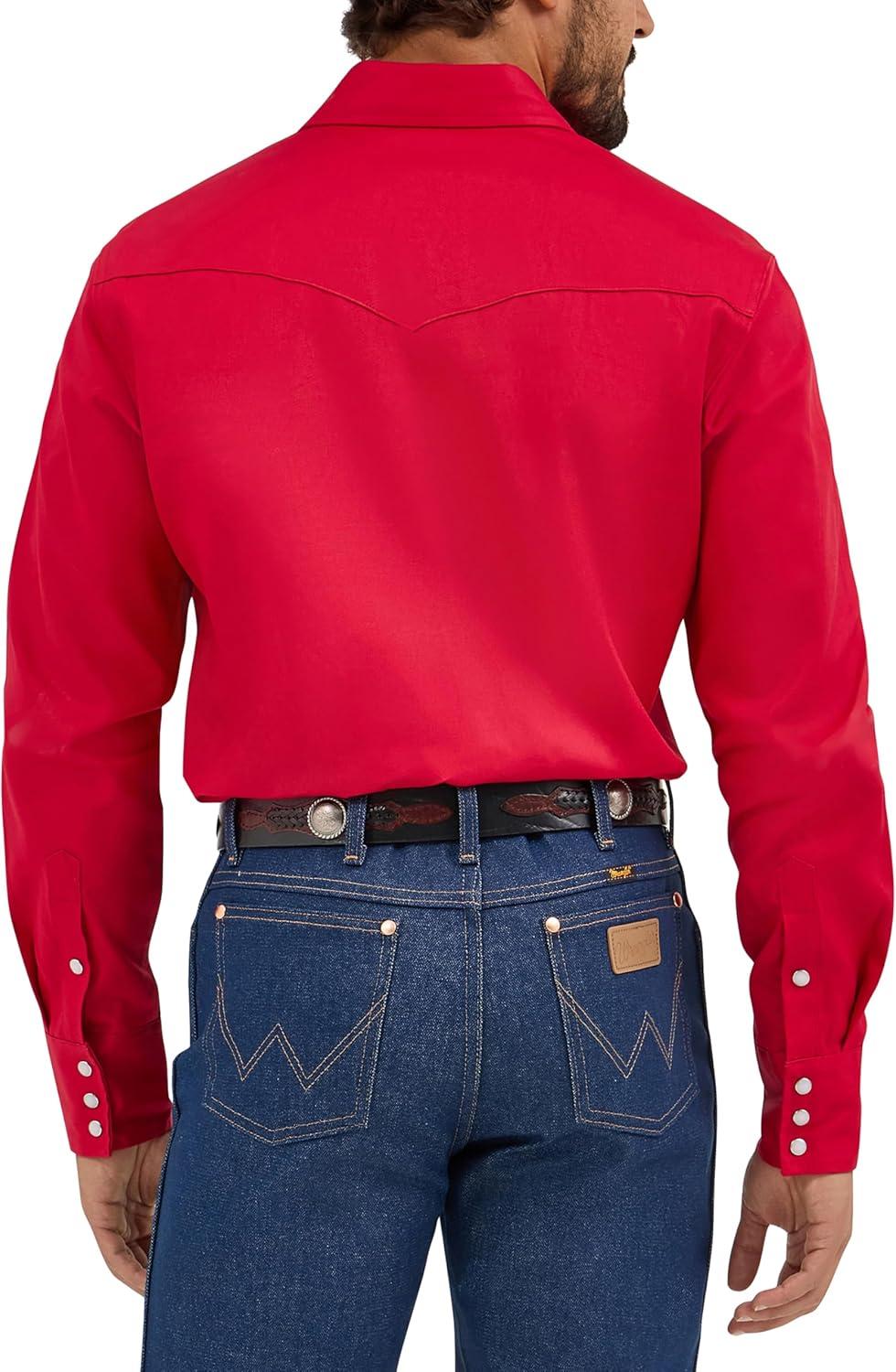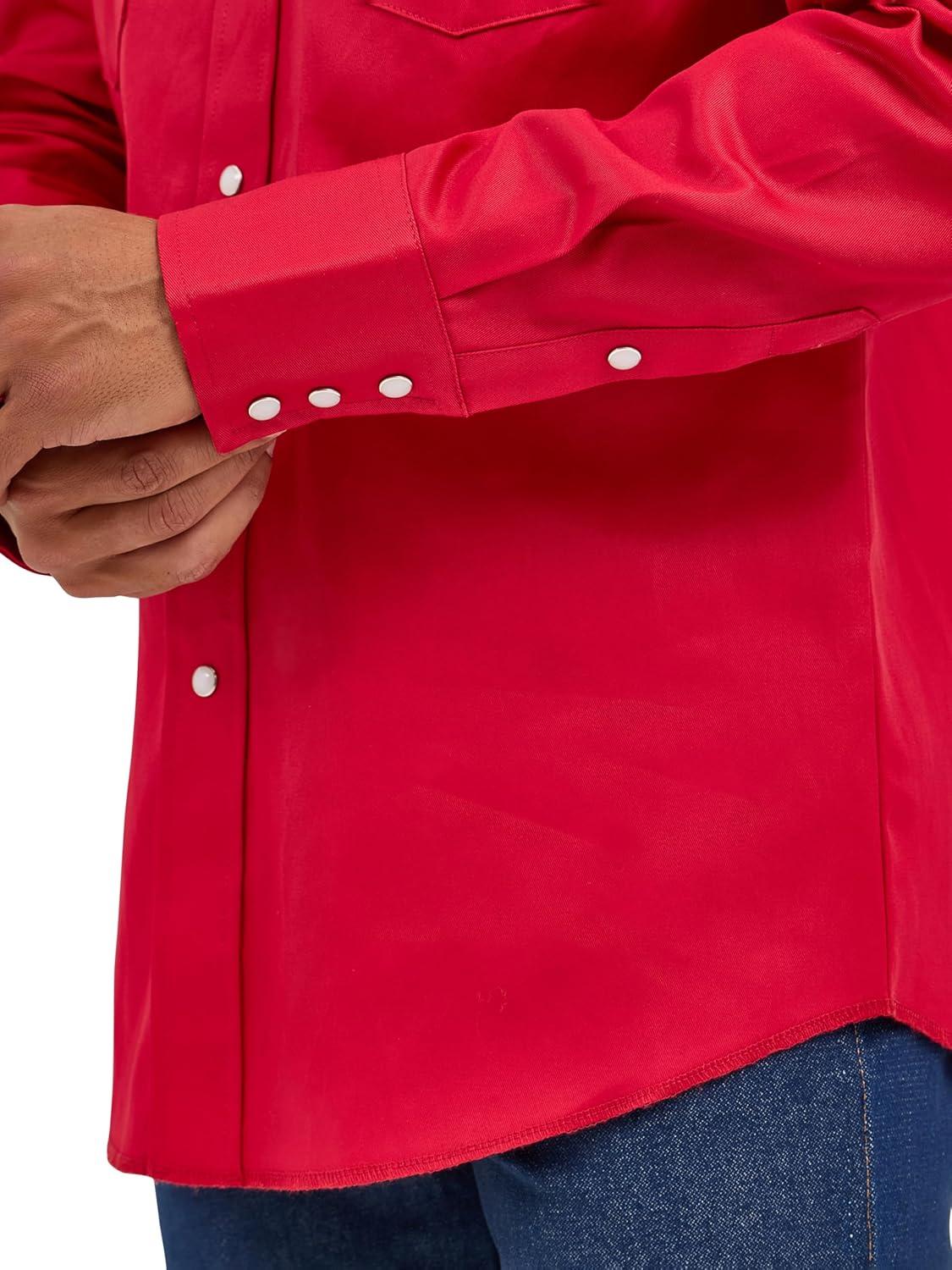 Wrangler Men’s Cowboy Cut Western Chambray Snap Long Sleeve Work Shirt(Red)