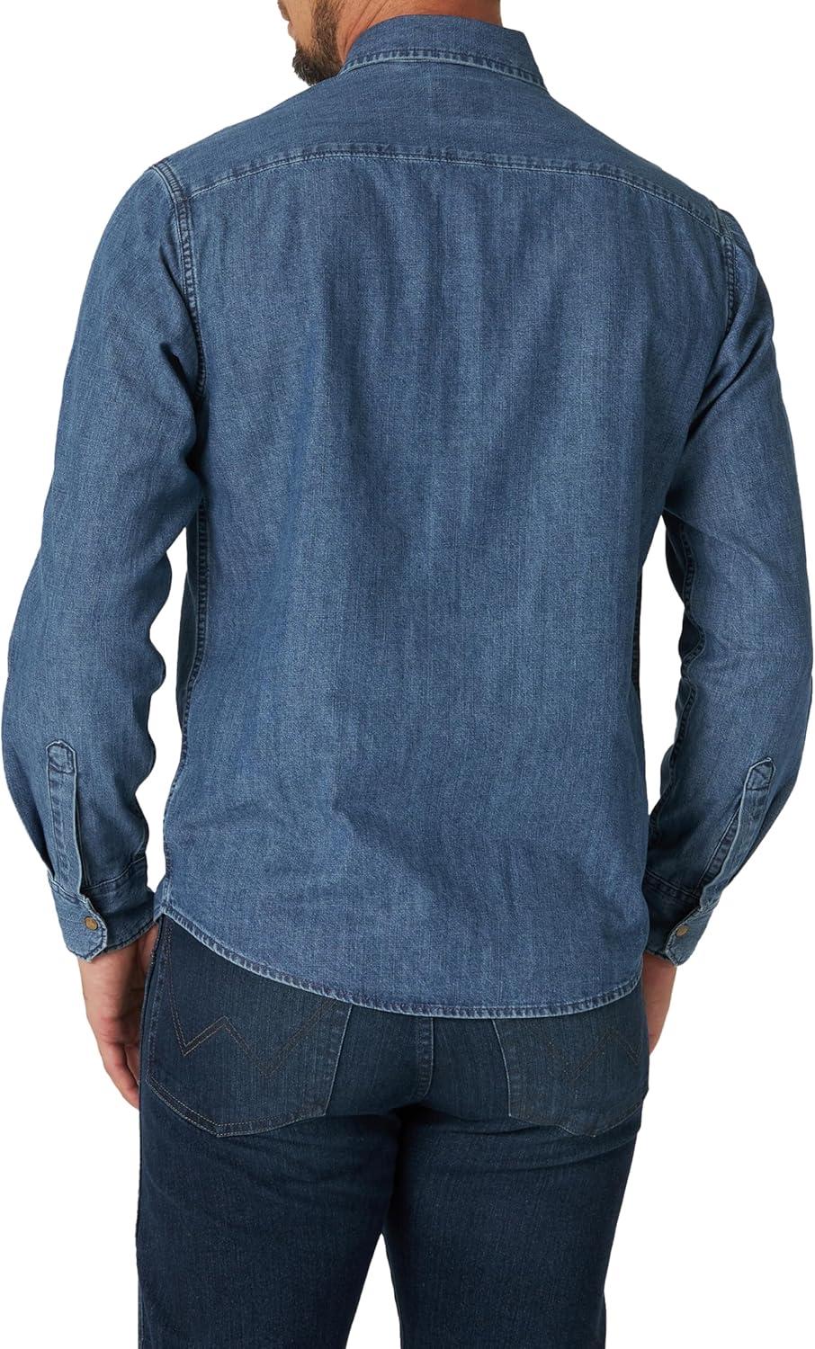 Wrangler Mens Iconic Denim Regular Fit Snap Shirt(Mid Tint Denim)