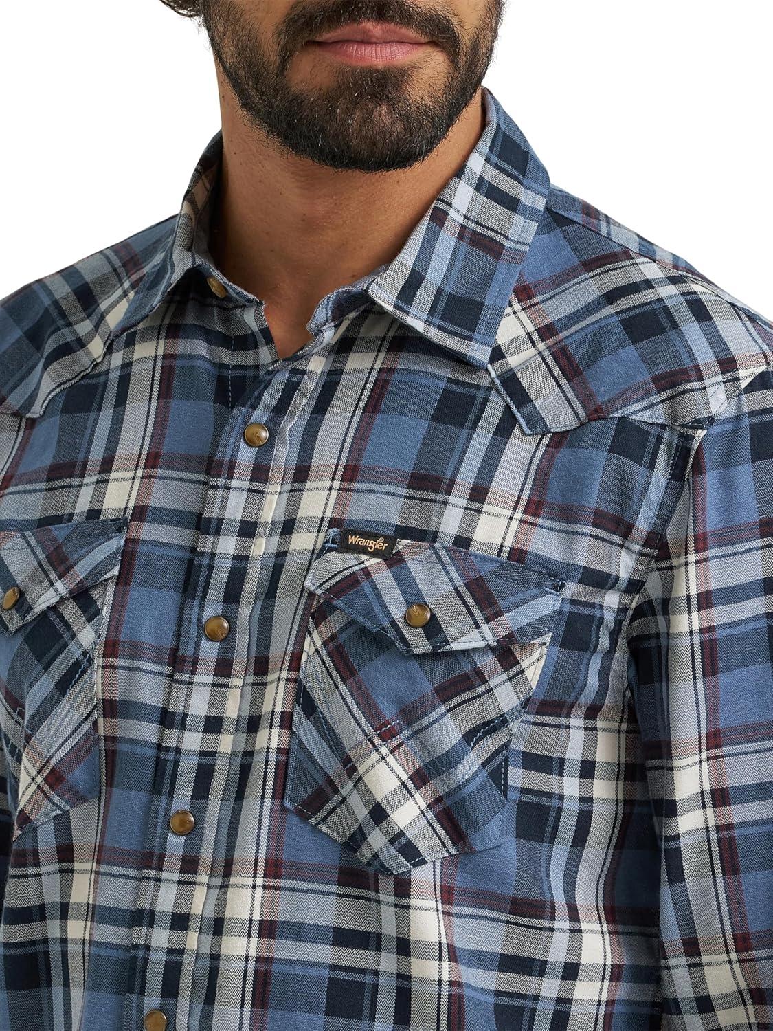 Wrangler Mens Iconic Denim Regular Fit Snap Shirt(Midnight Navy)