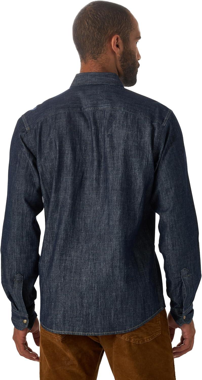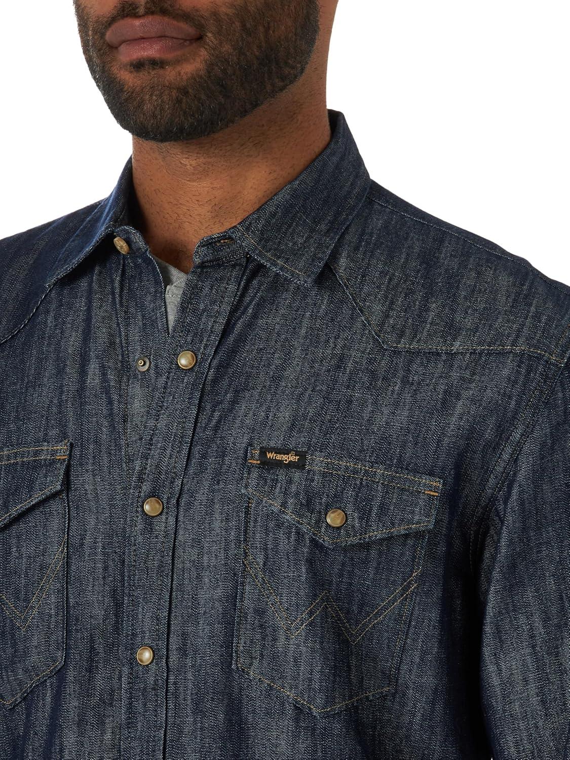 Wrangler Mens Iconic Denim Regular Fit Snap Shirt(Rinse Denim)