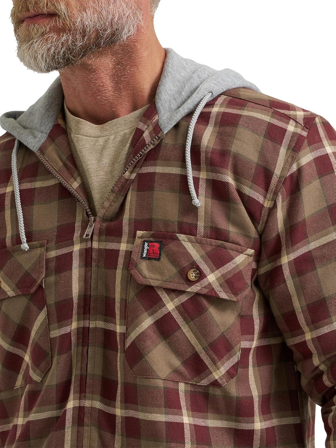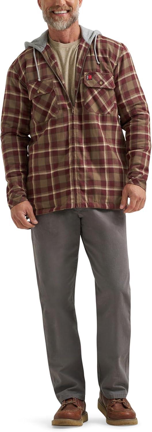 Wrangler mens Masonry Hooded Jacket(Chocolate Burgundy Plaid)