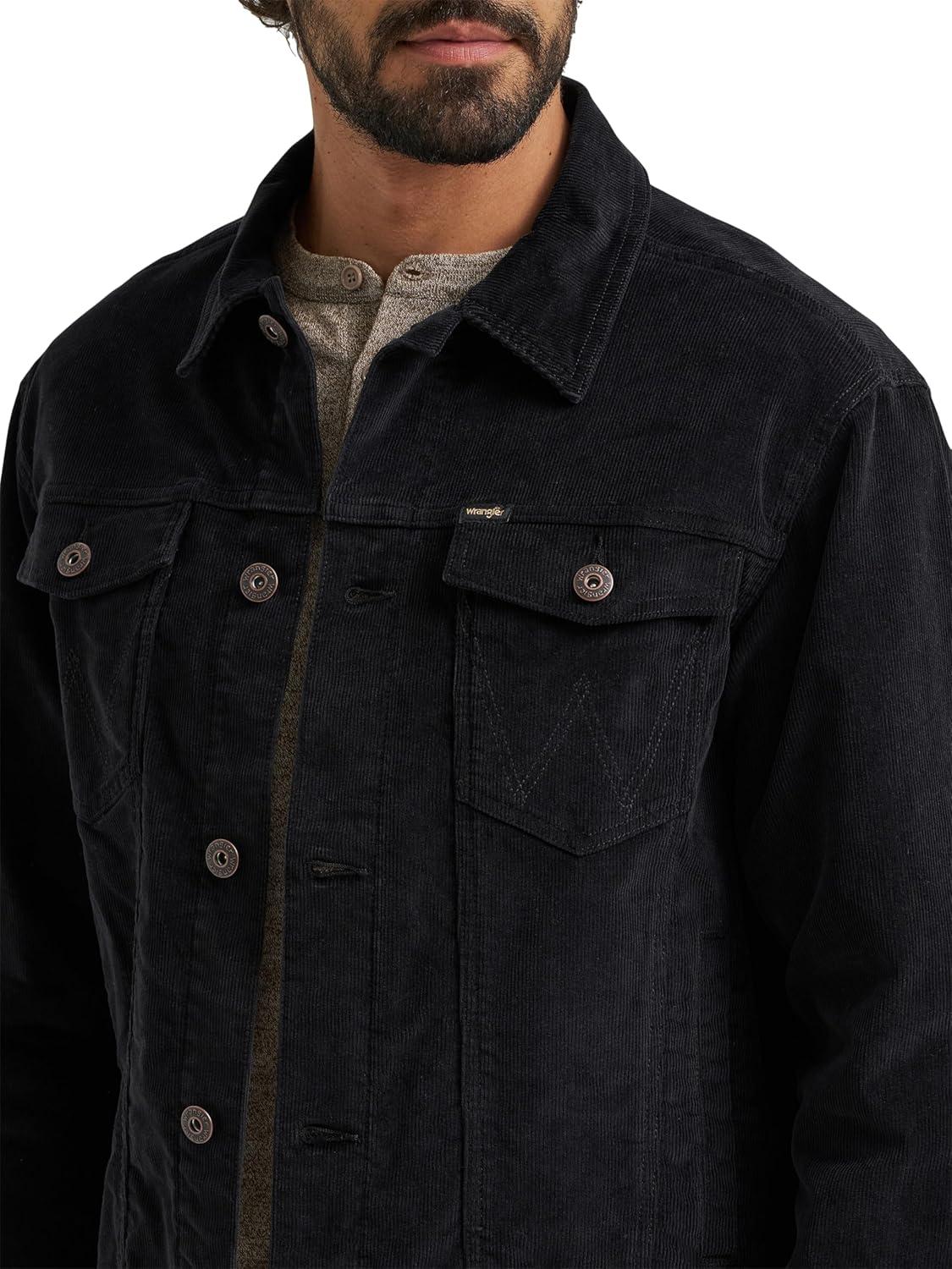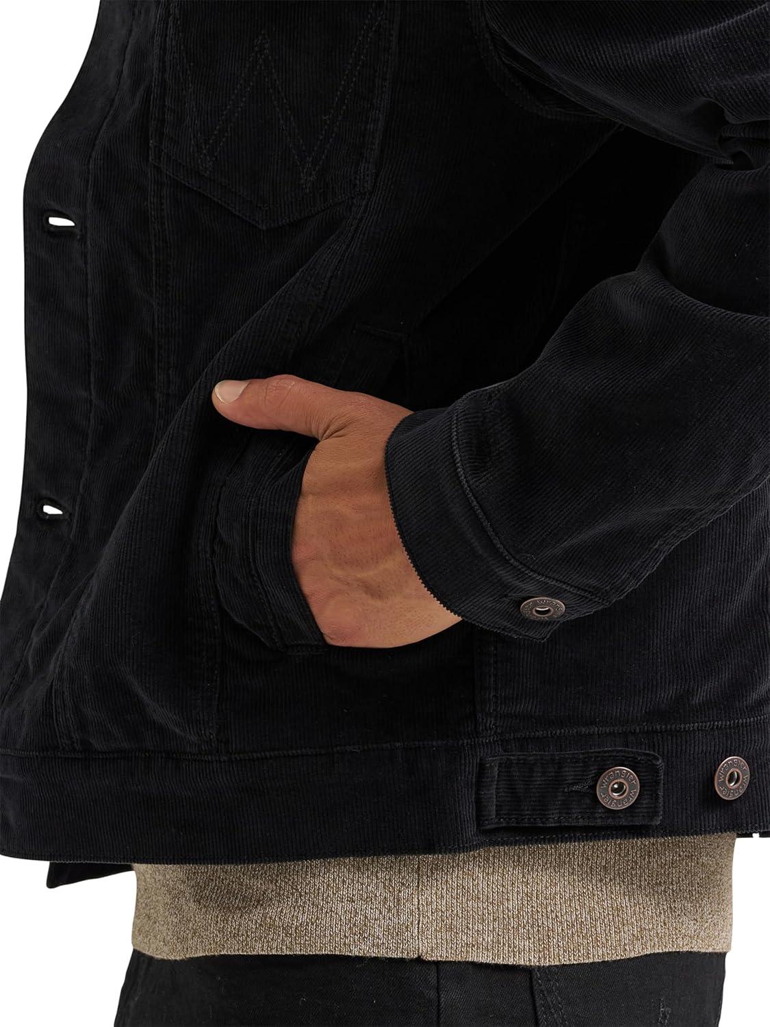 Wrangler mens Men’s Corduroy Trucker Jacket(Jet Black)