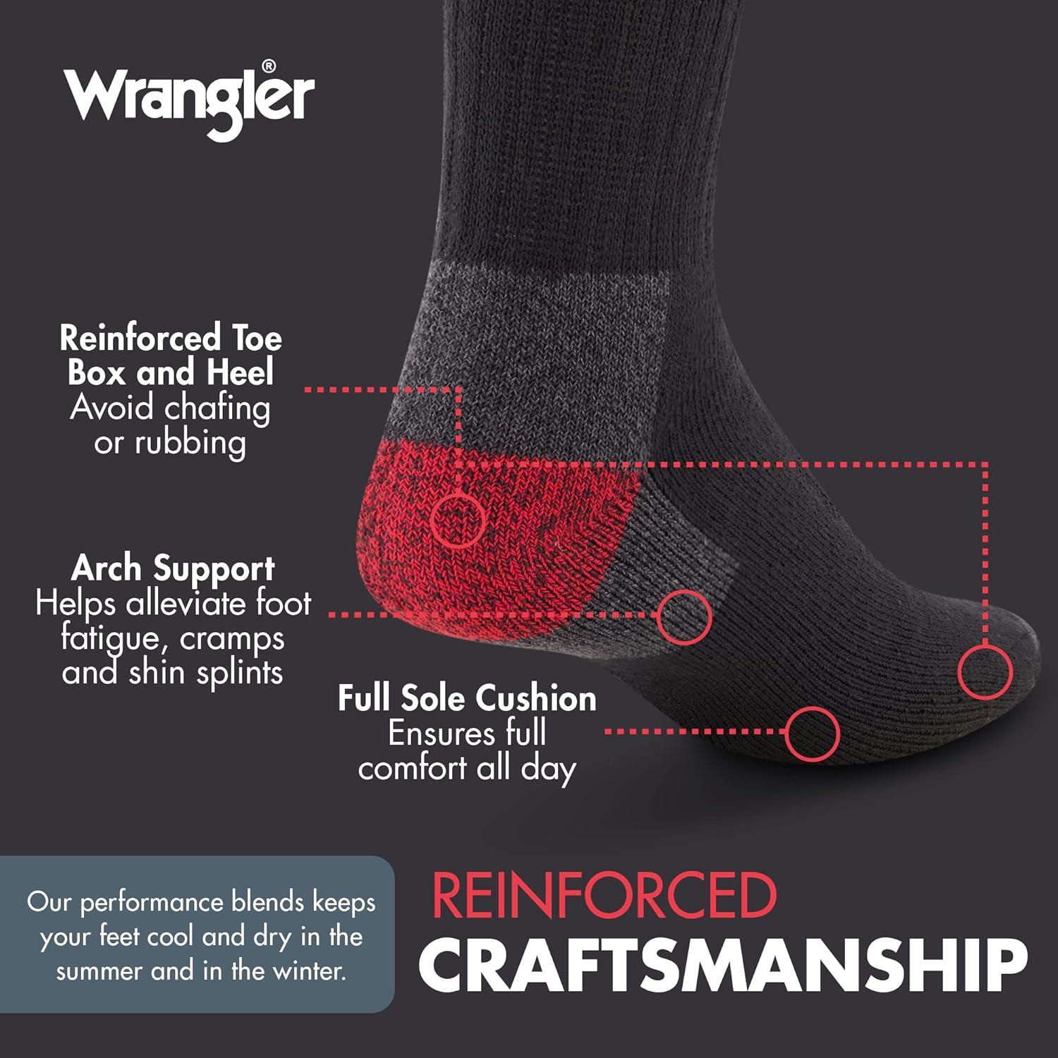 Basics that work as hard as you do. Wrangler’s Mid Weight, Medium Weight and Hi Vis Work Socks are designed for the working men of America. Be your best on the job when you have the right gear, and that starts from the bottom up. Our socks are designed to work as hard as you do, indoors, outdoors, in all weather conditions and temperatures.Feel the difference that is authentic Wrangler.
