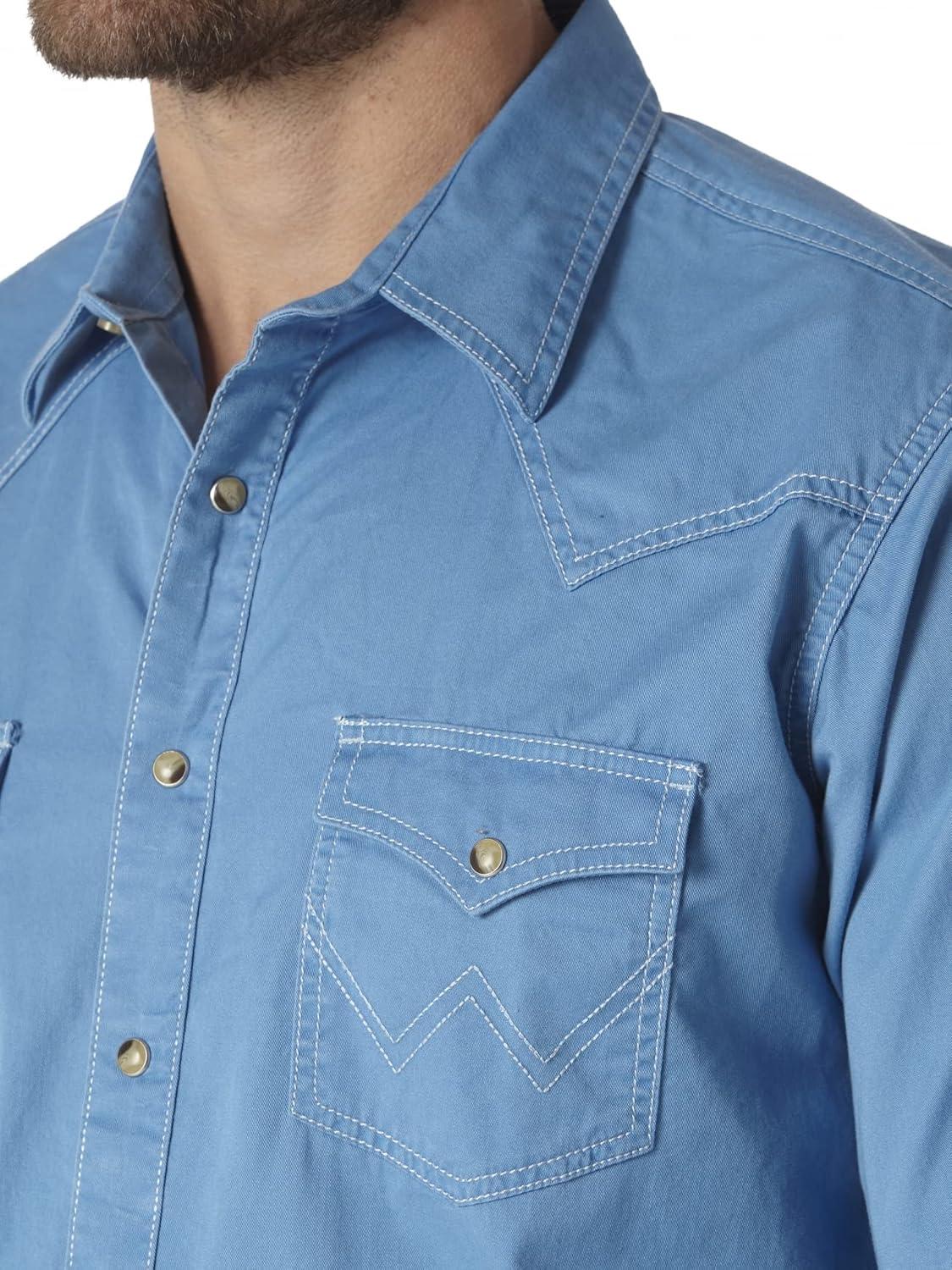 Wrangler Men’s Retro Two Pocket Long Sleeve Snap Shirt Discontinued(Blue)