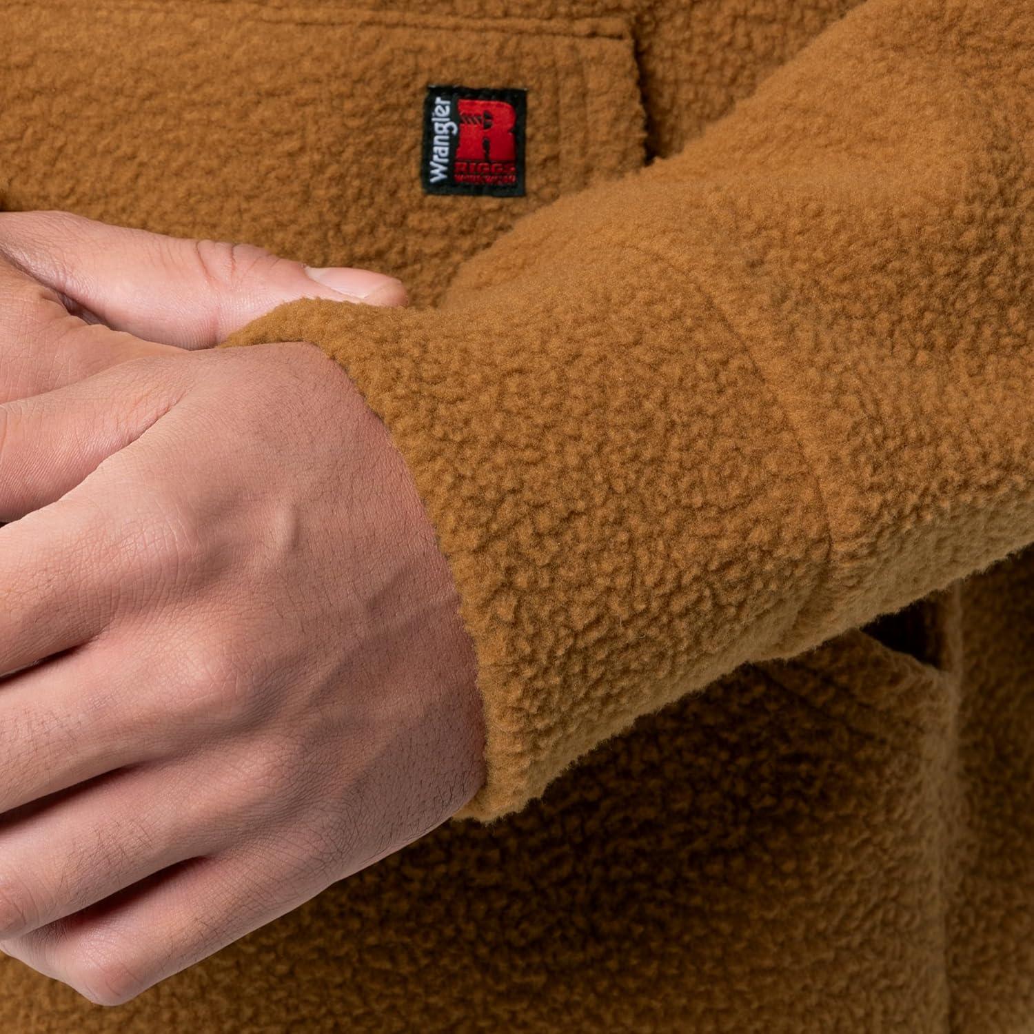 Stay cozy in the Wrangler Riggs Workwear Men's Sherpa Pullover Hoodie. Its polyester Sherpa fabric provides insulation, while the soft jersey hood lining adds comfort. With a tape measure patch, reinforced pocket, hand warmer, media pocket, and printed neck tape, it combines convenience and style for your workwear needs.