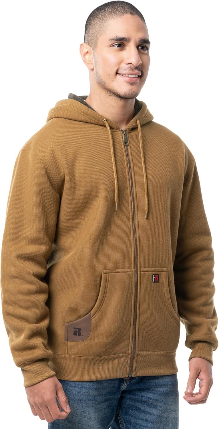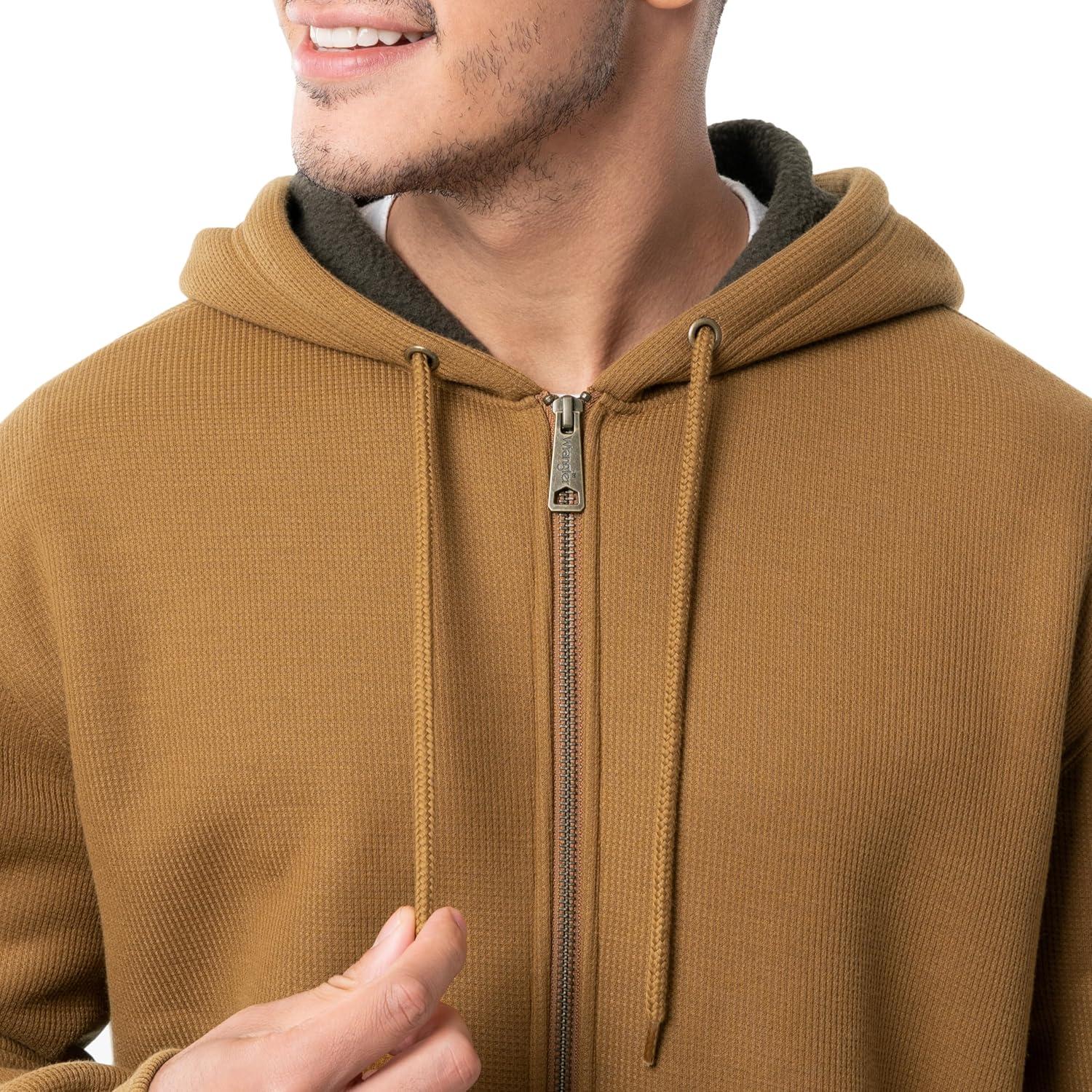Wrangler mens Thermal Sherpa Zip Hoodie(Duck Heather Brown/Dark Brown)