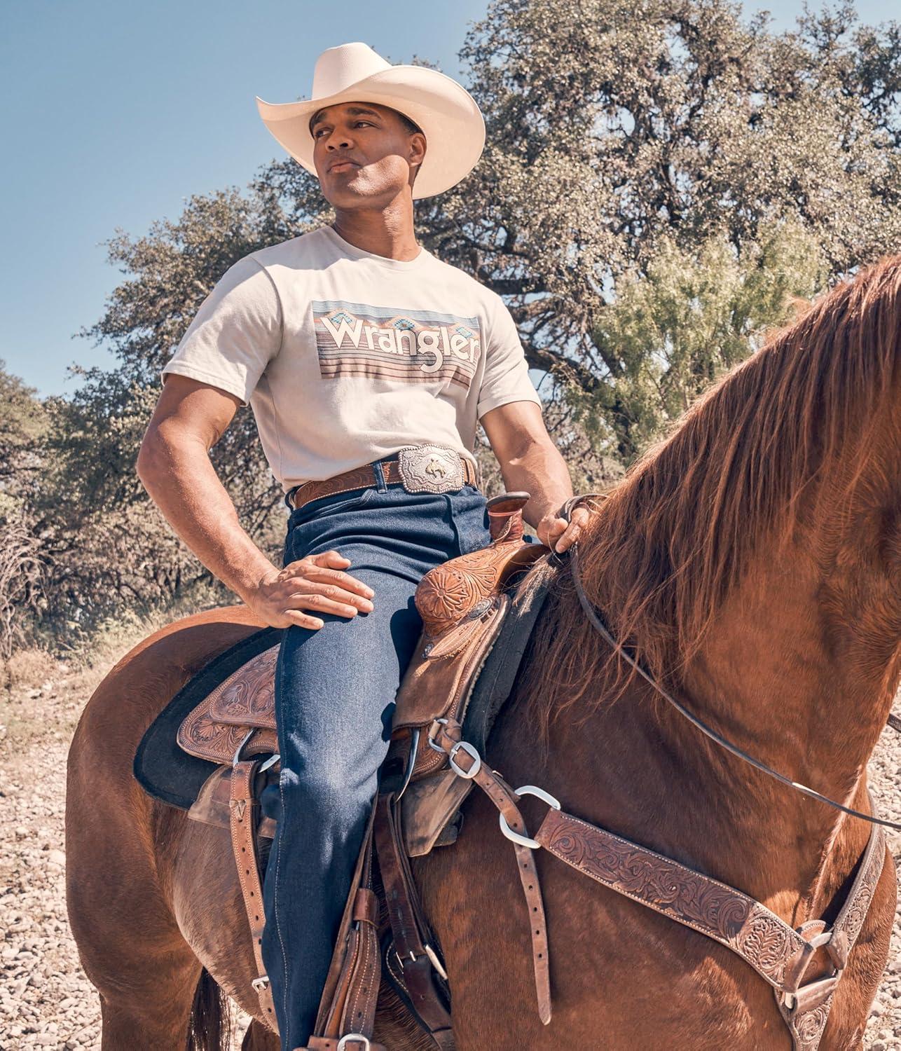 Wrangler Mens Western Crew Neck Short Sleeve Tee Shirt(Blue Fox Heather)