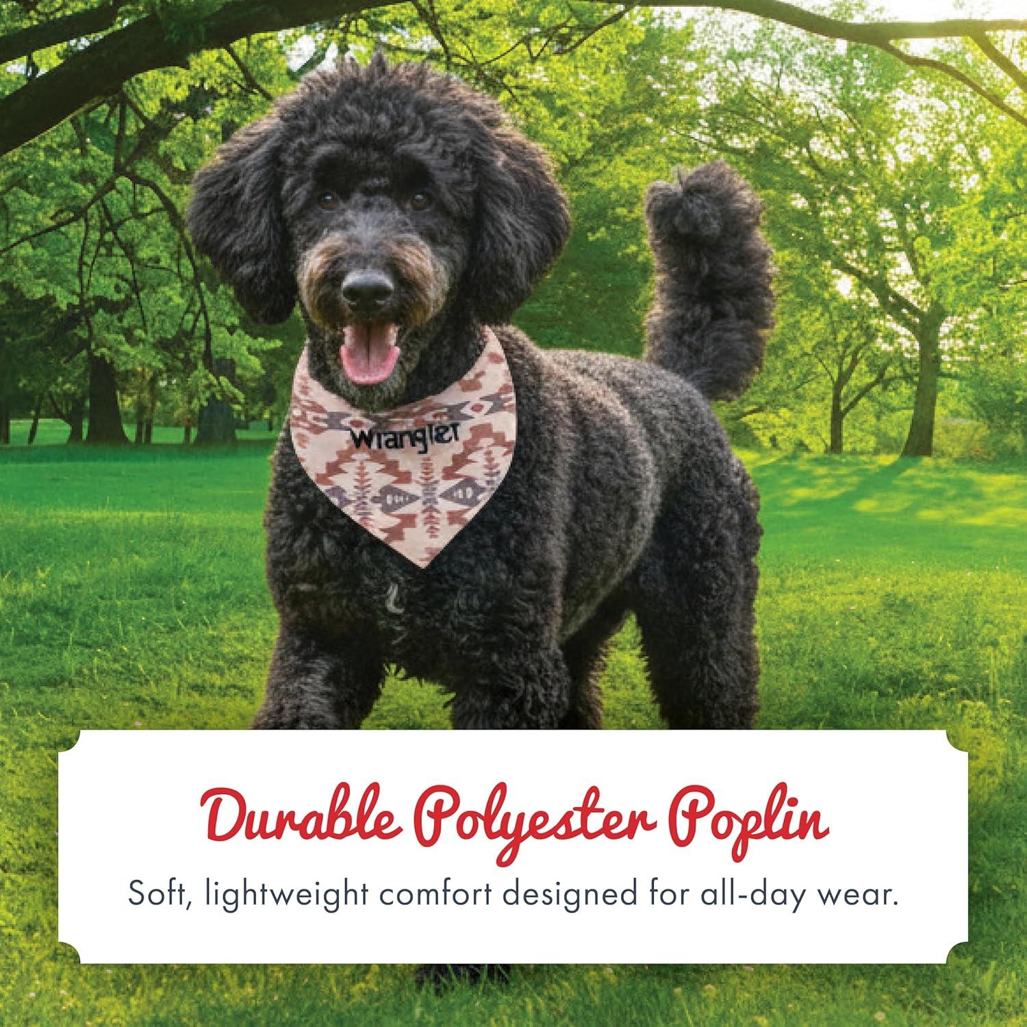 Iconic Pattern Design – Featuring timeless Wrangler designs in paisley and southwest patterns, our stylish dog bandana enhances your pet’s look for any occasion, blending classic flair with authentic brand style