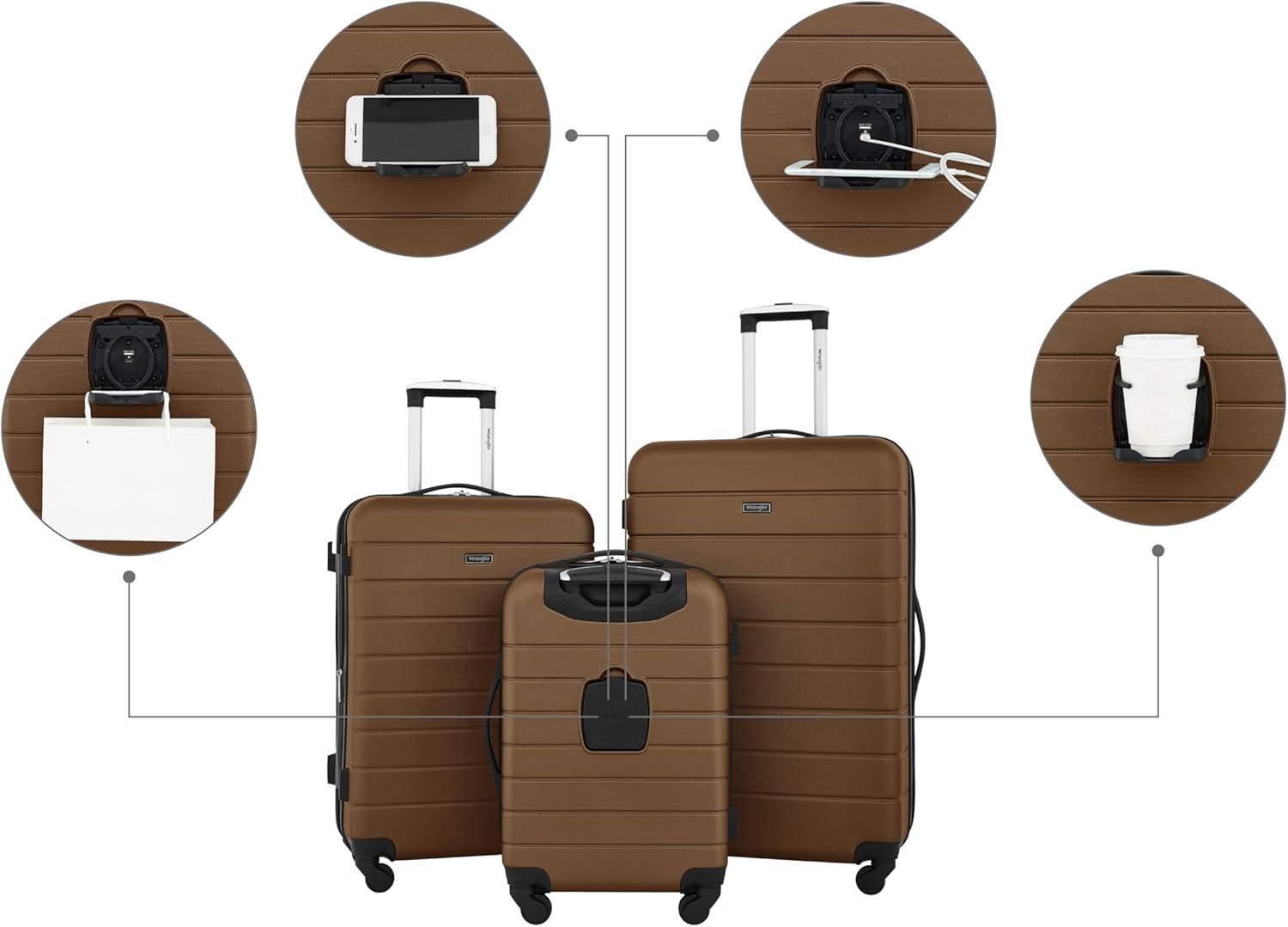 Wrangler Smart Luggage Set with Cup Holder, USB Port and Phone Holder, Black, 2 Piece Set(Toffee)