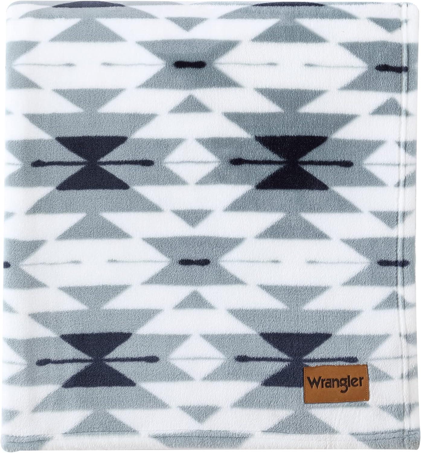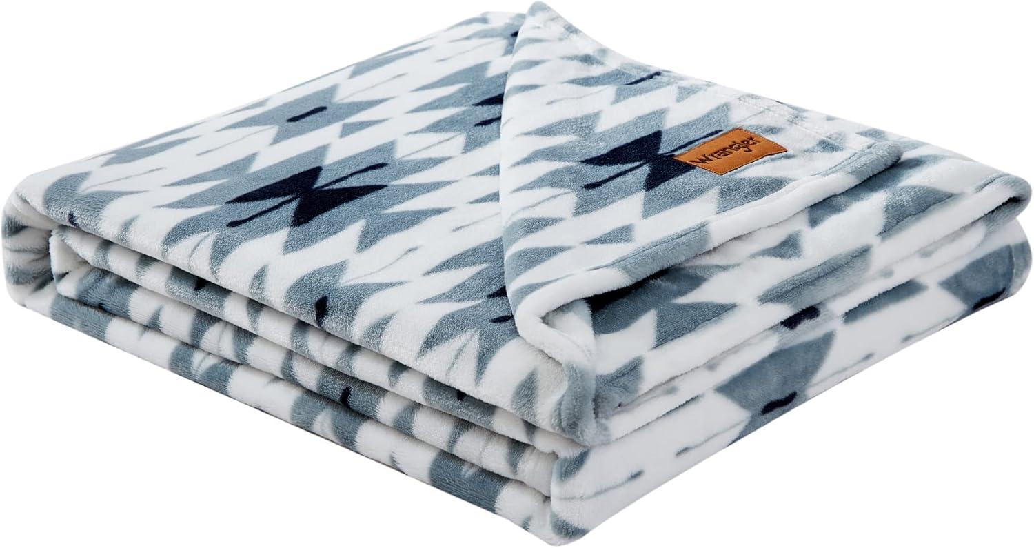 Wrangler – Throw Blanket, Soft Plush Fleece Bedding, Yellowstone Inspired, Western Decor for Bed or Couch (Canyon Ikat Blue, 50″ x 60″)(Navajo Light Blue)