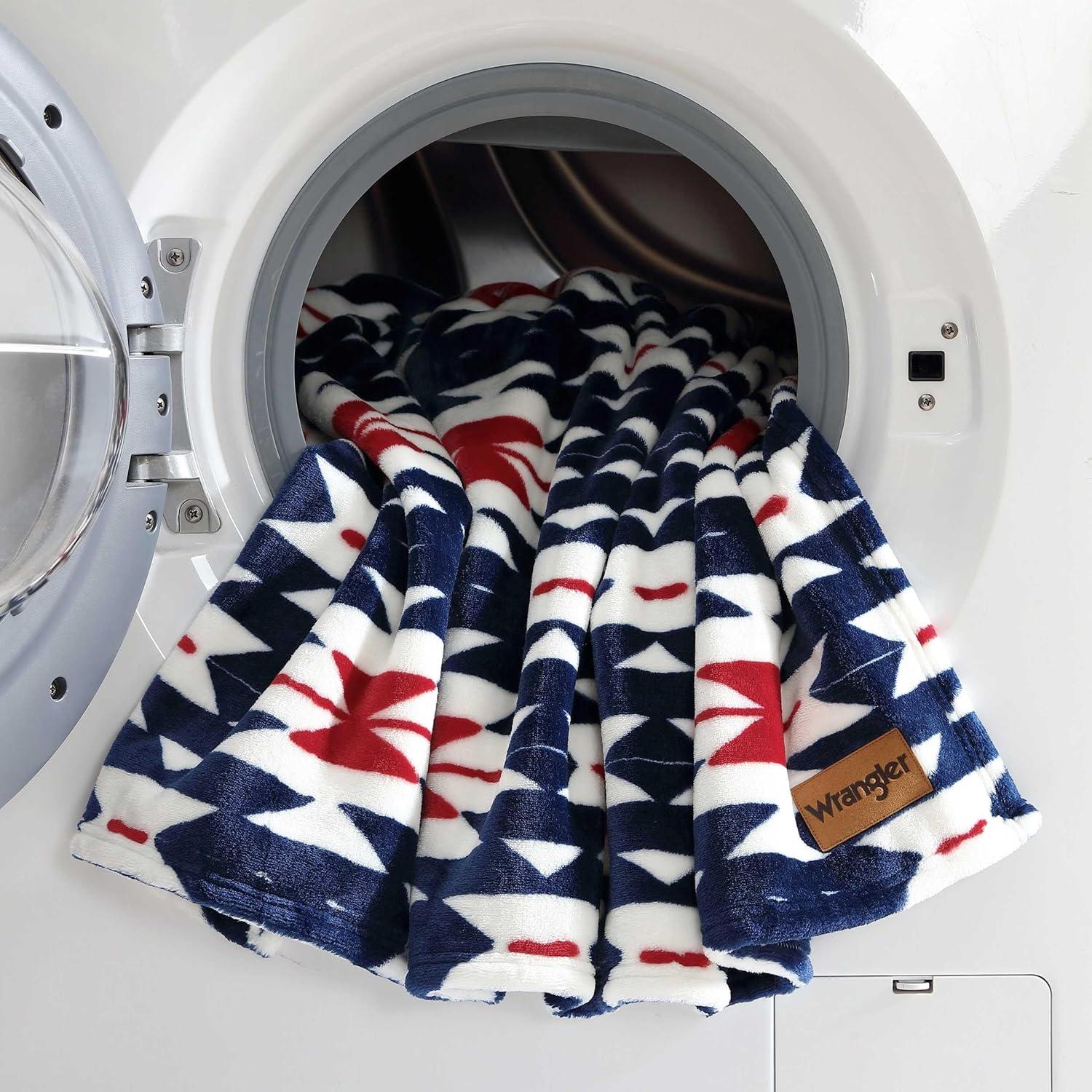 FEATURES: 100% Premium Polyester Plush Construction-with an ultra soft and cozy feel; self-hem detailing and an iconic Wrangler branded logo patch in faux leather; Perfect layering piece for your bedding ensemble