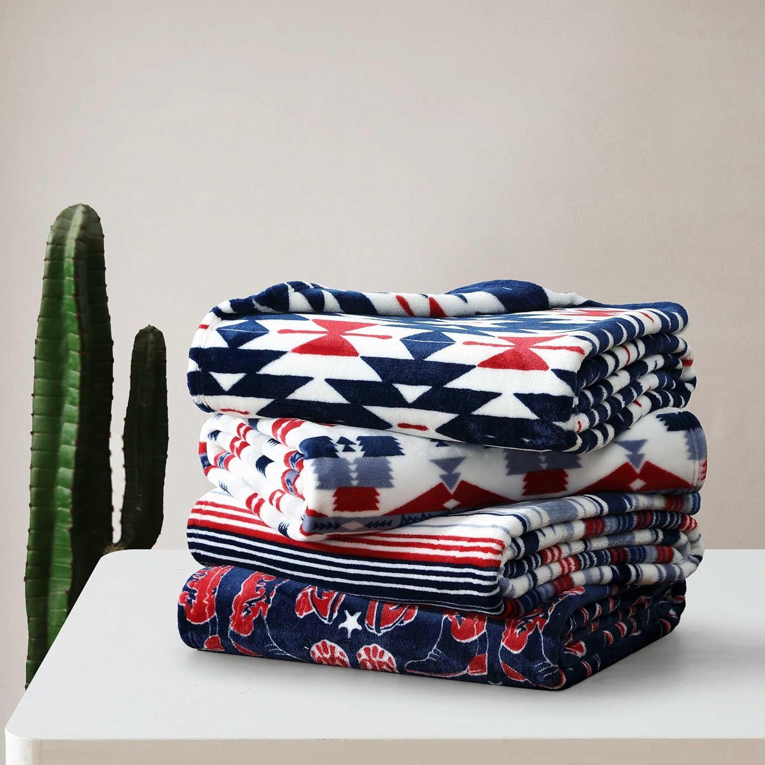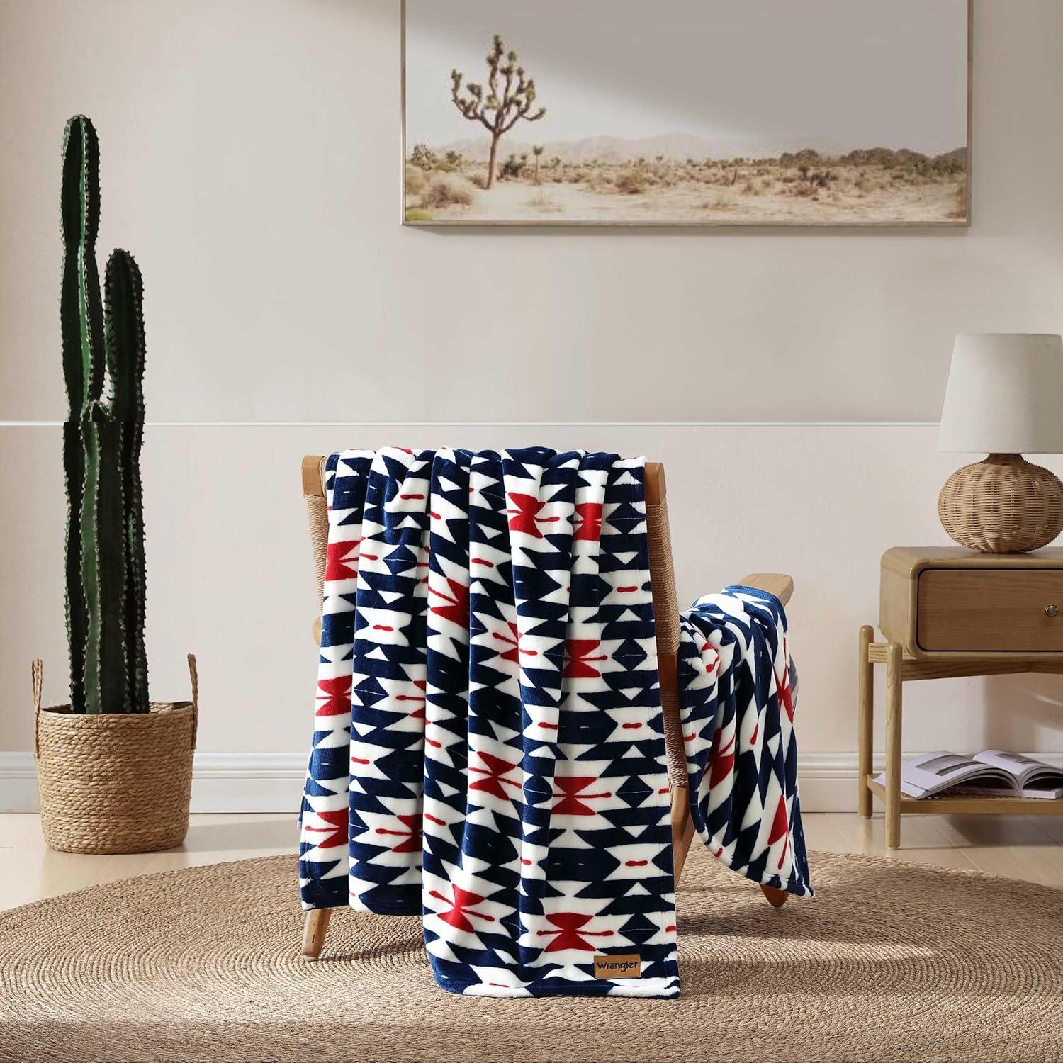 Wrangler – Throw Blanket, Soft Plush Fleece Bedding, Yellowstone Inspired, Western Decor for Bed or Couch (Knocking Boots Blue, 50″ x 70″)(Navajos Blue)