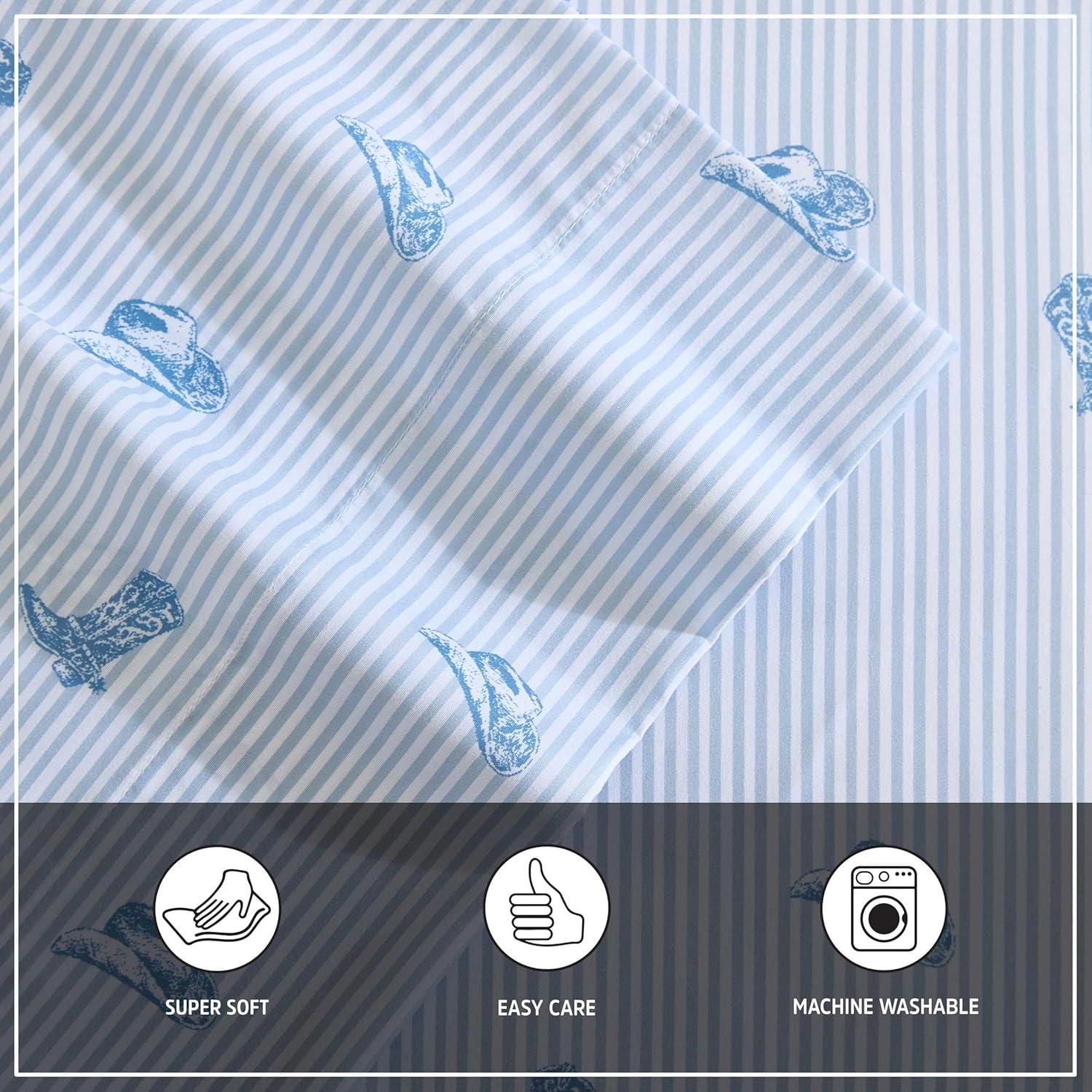Wrangler – Twin Bed Sheets, Ultra-Soft & Lightweight Bedding with Matching Pillowcase, Lightweight Bed Set for All Season Comfort, Oeko-Tex Certified (Prairieland Paisley Blue)(Cowboy Pinstripe Blue)